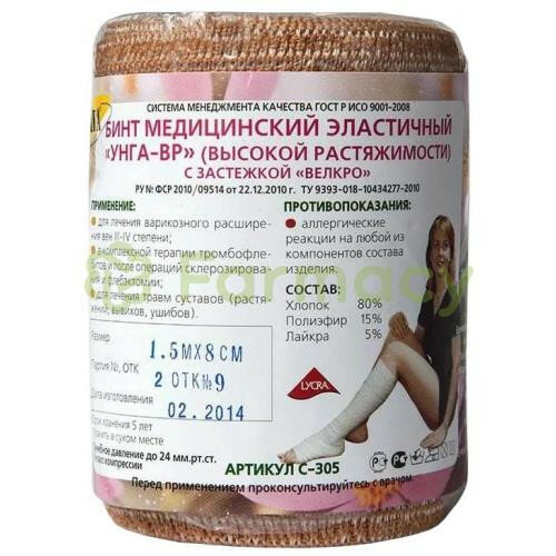 Бинт мед эластичный УНГА-вр 1,5 м х8 см (С-305) х1