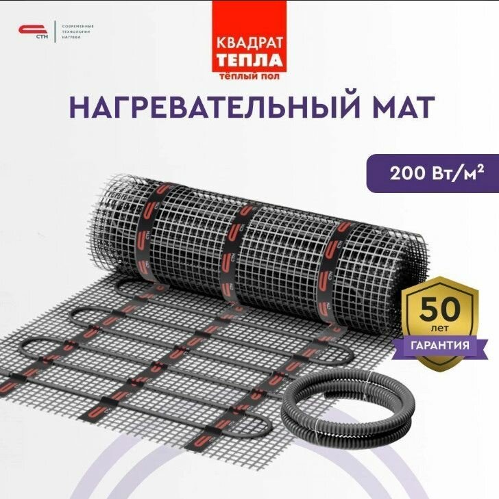 Нагревательный мат, СТН, Квадрат тепла КМ PLUS, 200 Вт/м2, 1 м2, 200х50 см