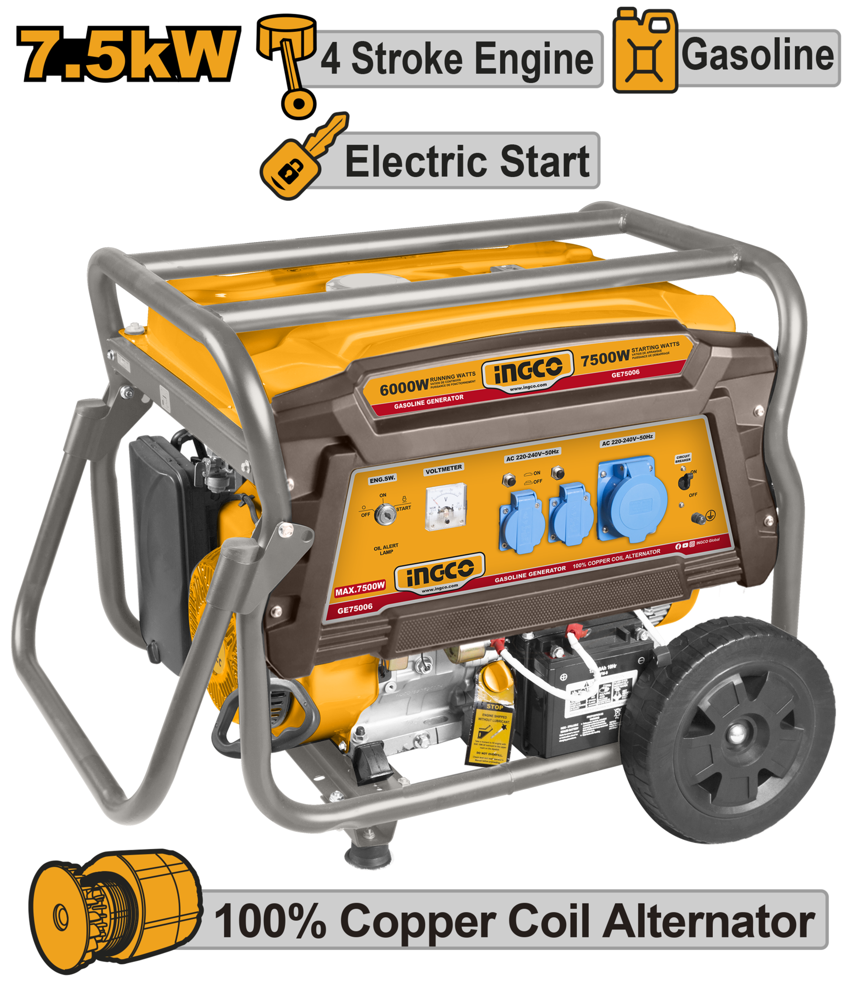 Бензиновый генератор 220В 6,0/7,5 кВт INGCO GE75006 INDUSTRIAL