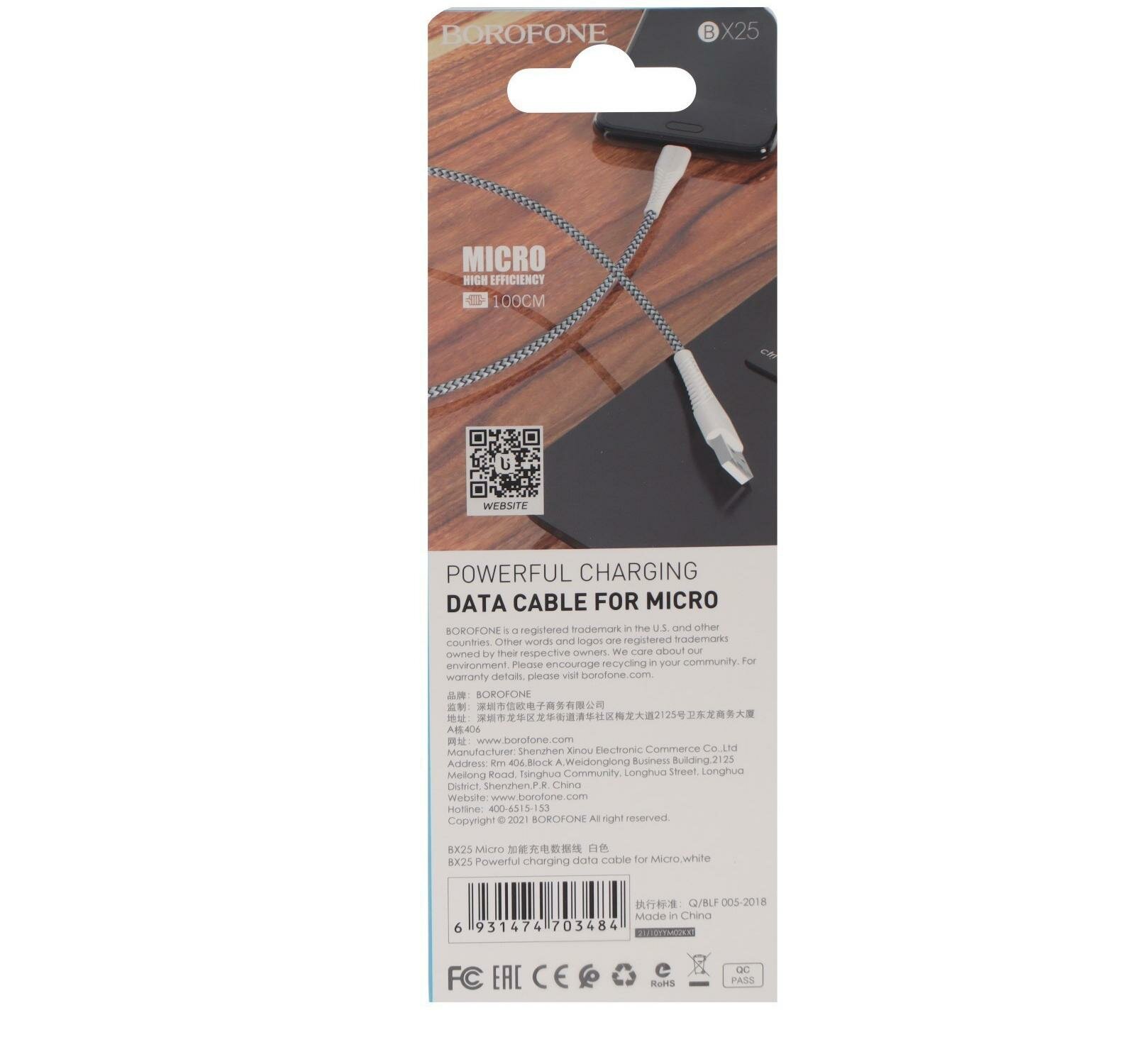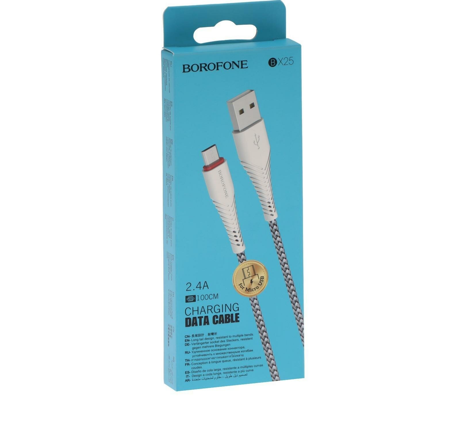 Купить Кабель Borofon MicroUSB BX25 Powerful 2,4А нейлон 1м (белый)