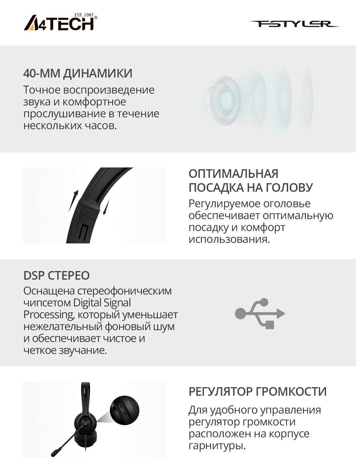 Наушники с микрофоном A4Tech HU-8 черный 2м накладные USB оголовье HU-8 . интересное: