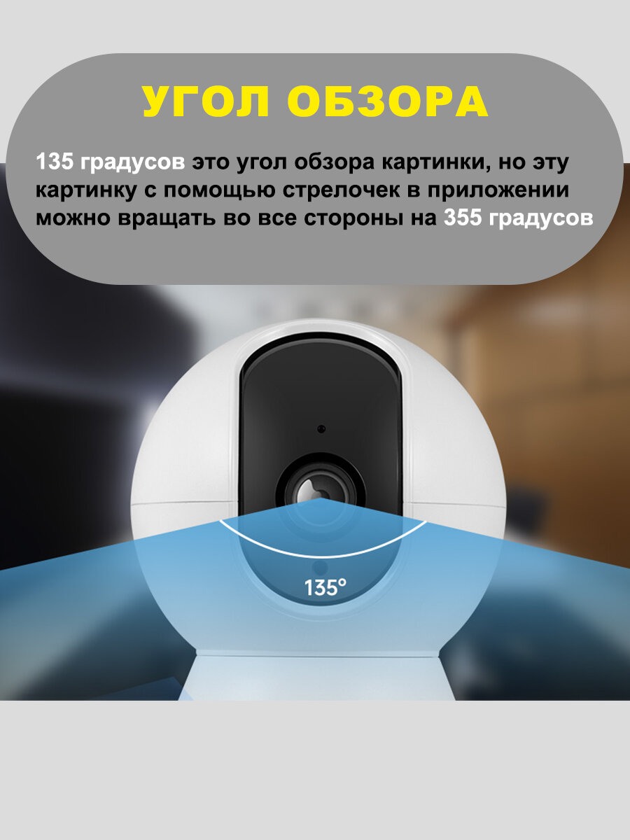 IP-камера видеонаблюдения Wi-Fi для дома с обзором 360 градусов белая