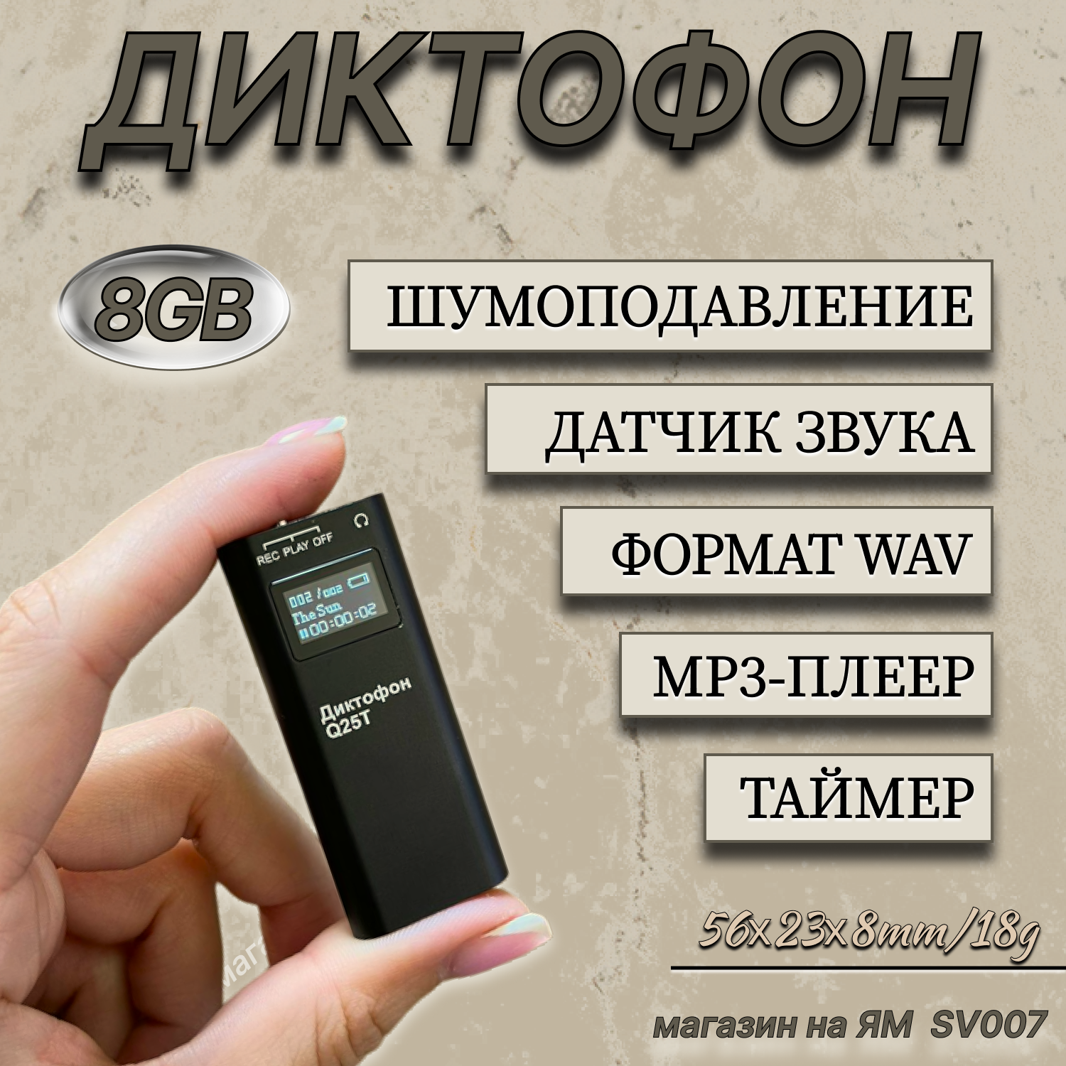 Цифровой диктофон с дисплеем Q25T, датчик звука, АРУ, крепление на одежду, память 8GB интересное: