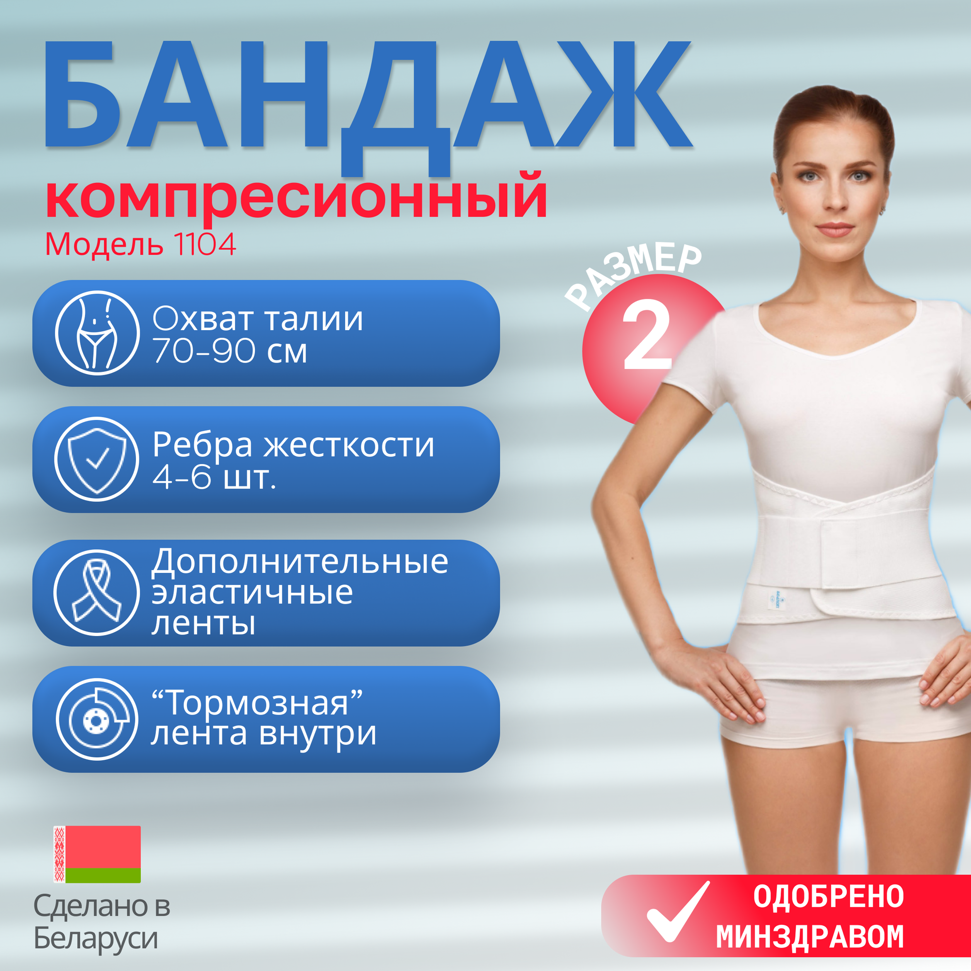 Бандаж фиксирующий компрессионный модель 1104 размер 2, обхват талии 77-90 см (белый)
