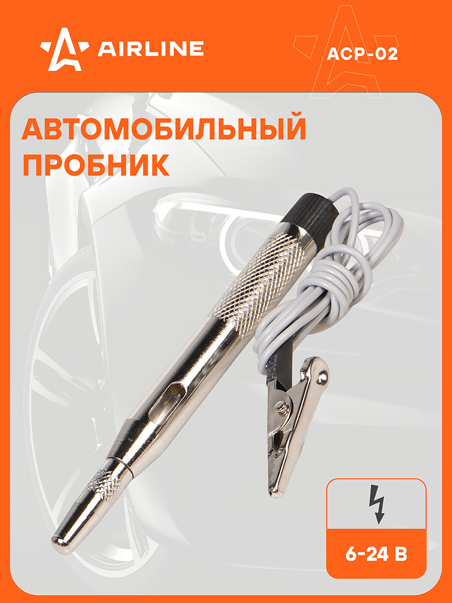 Ниже Вы можете прочитать отзывы на Пробник автомобильный с лампой и проводом металл 6/12/24В 110мм ACP-02 AIRLINE, ознакомится с подробными характеристиками, посмотреть интересные обзоры и фотографии на Пробник автомобильный с лампой и проводом металл 6/12/24В 110мм ACP-02 AIRLINE.