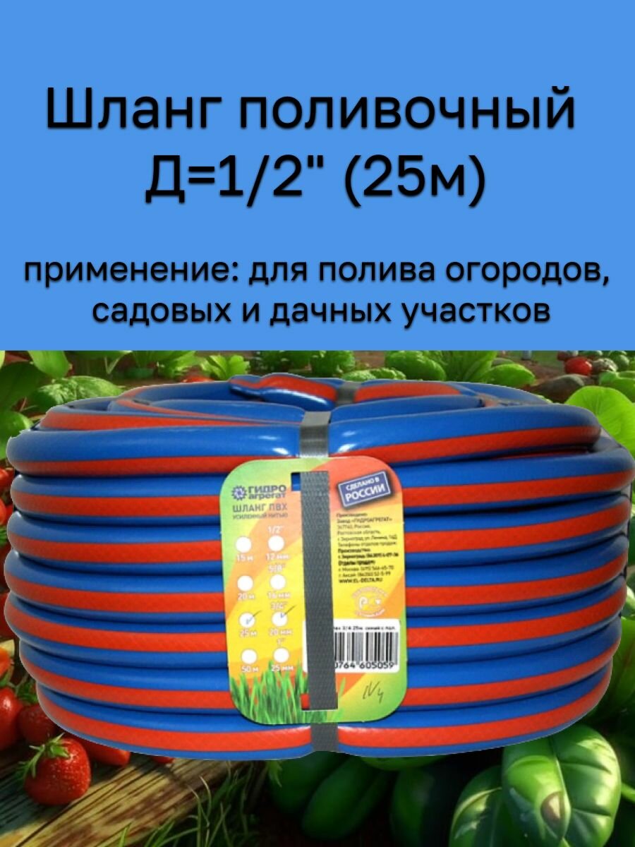 СохранитьШланг поливочный, диаметр 12 мм, длинна 25 м, арм., 3-х слойный Гидроагрегат синий с оранжевой полосой. интересное: