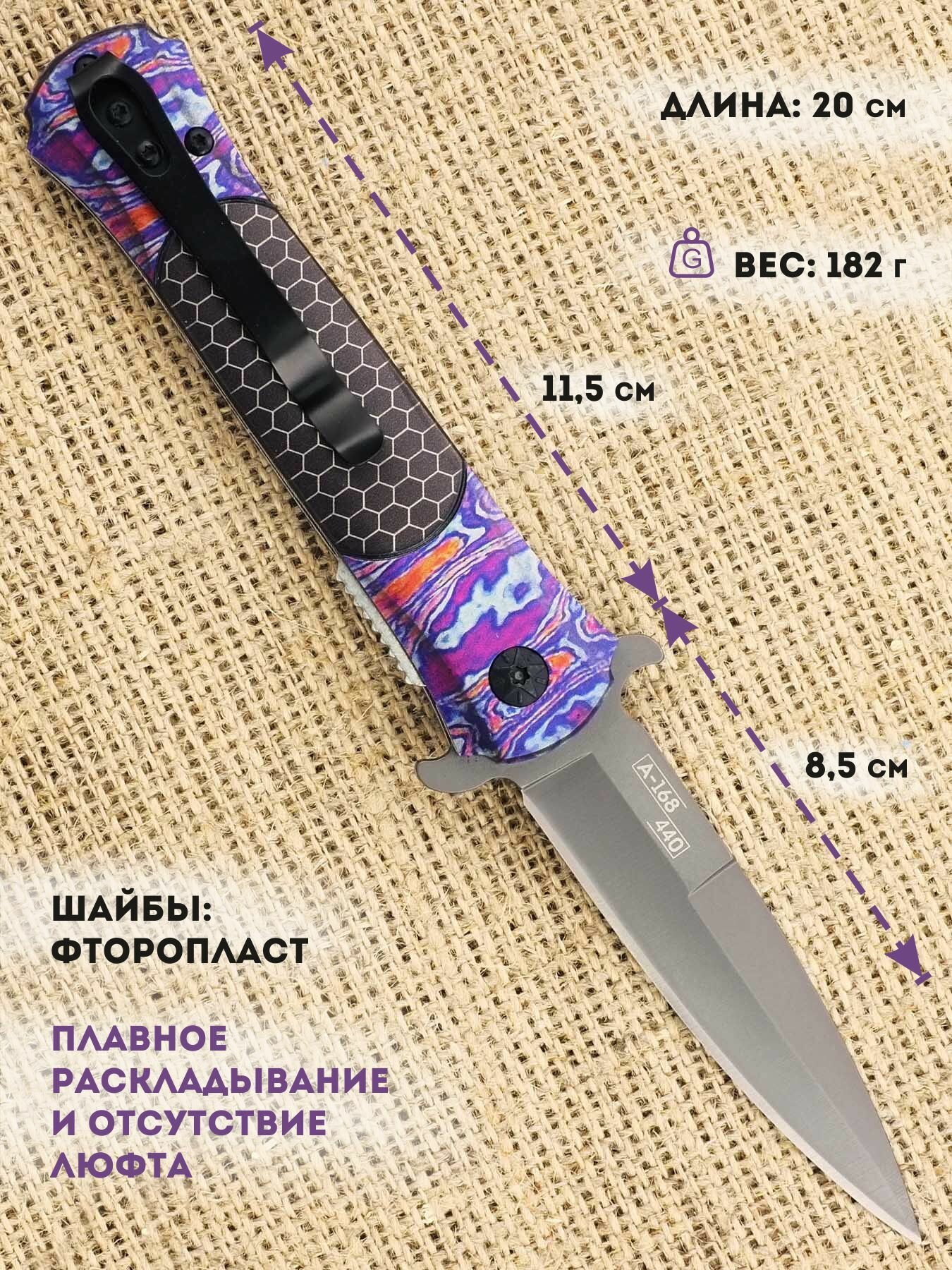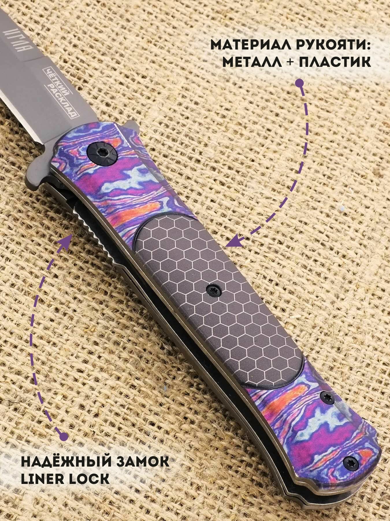 | Дополнительная информация | марка стали: 440; твердость стали, HRC: 55-56; тип замка: Liner Lock |
