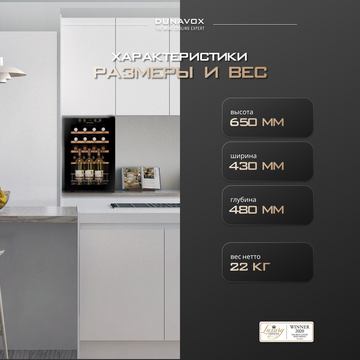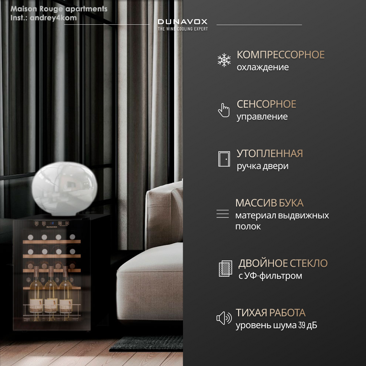 Винный холодильный шкаф Dunavox DXFH-20.62 компрессорный (отдельностоящий холодильник для вина на 20 бутылок) интересное: