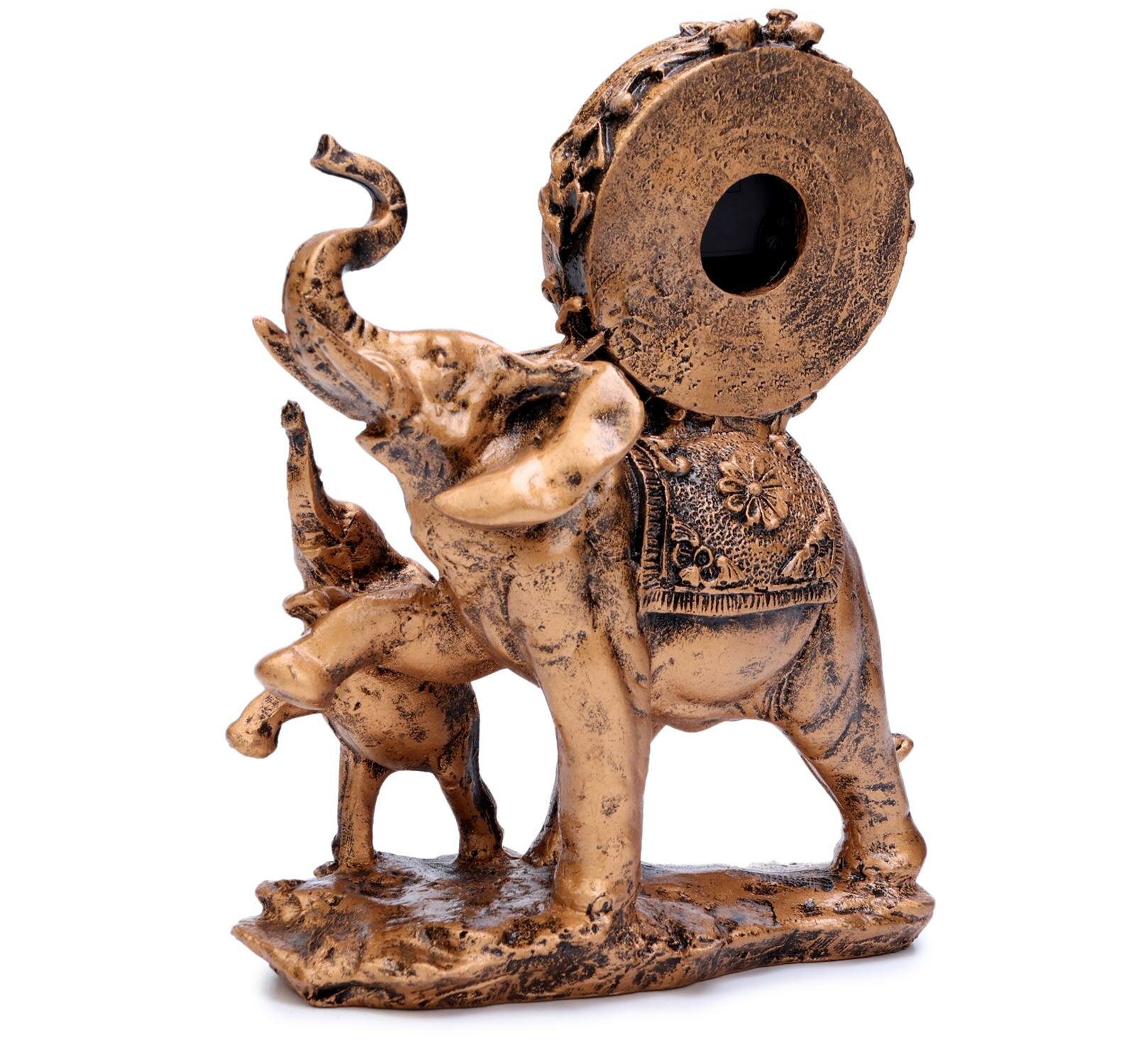 Купить Часы настольные интерьерные"Каминные. Слониха и слонёнок", 17 х 21 см, циферблат d-5.5 см 1030955