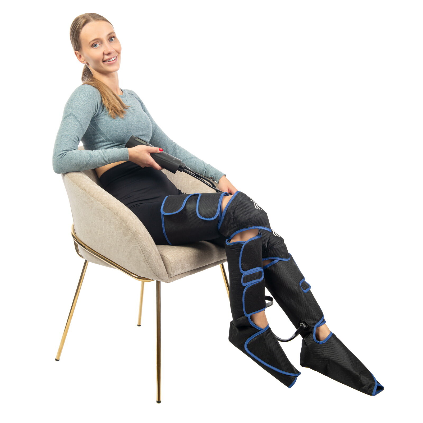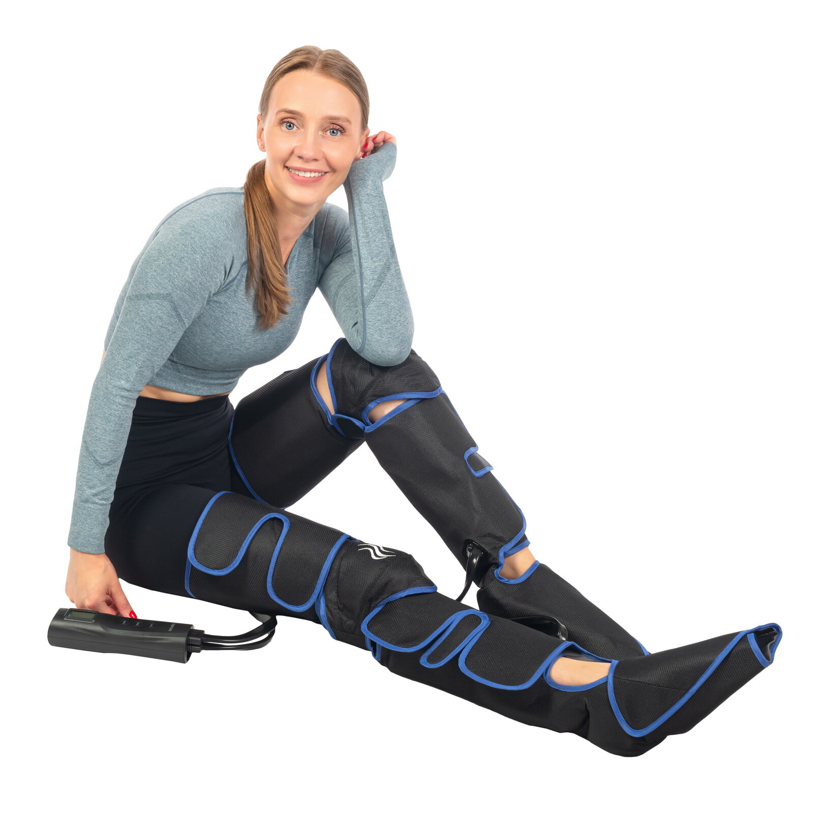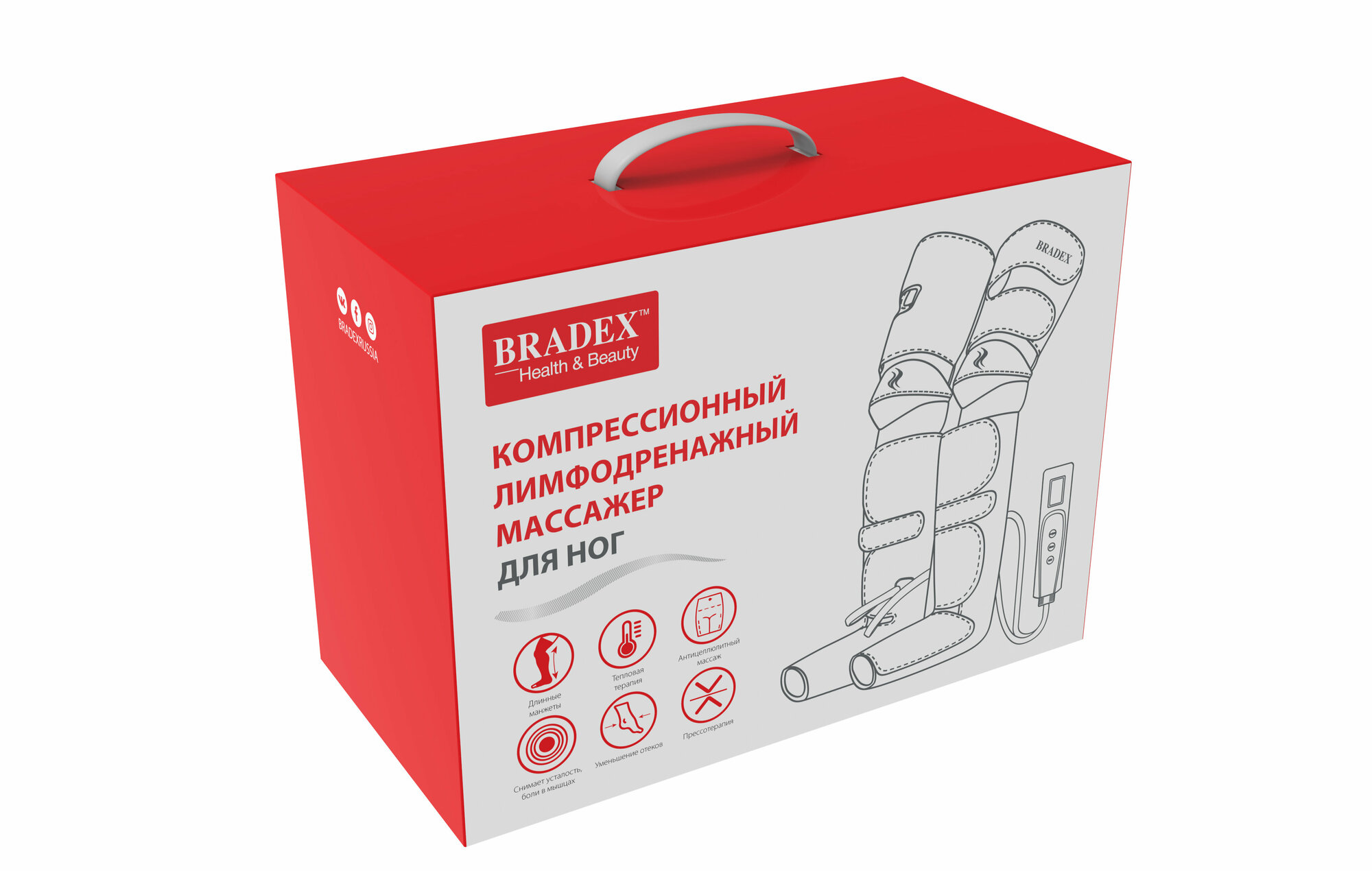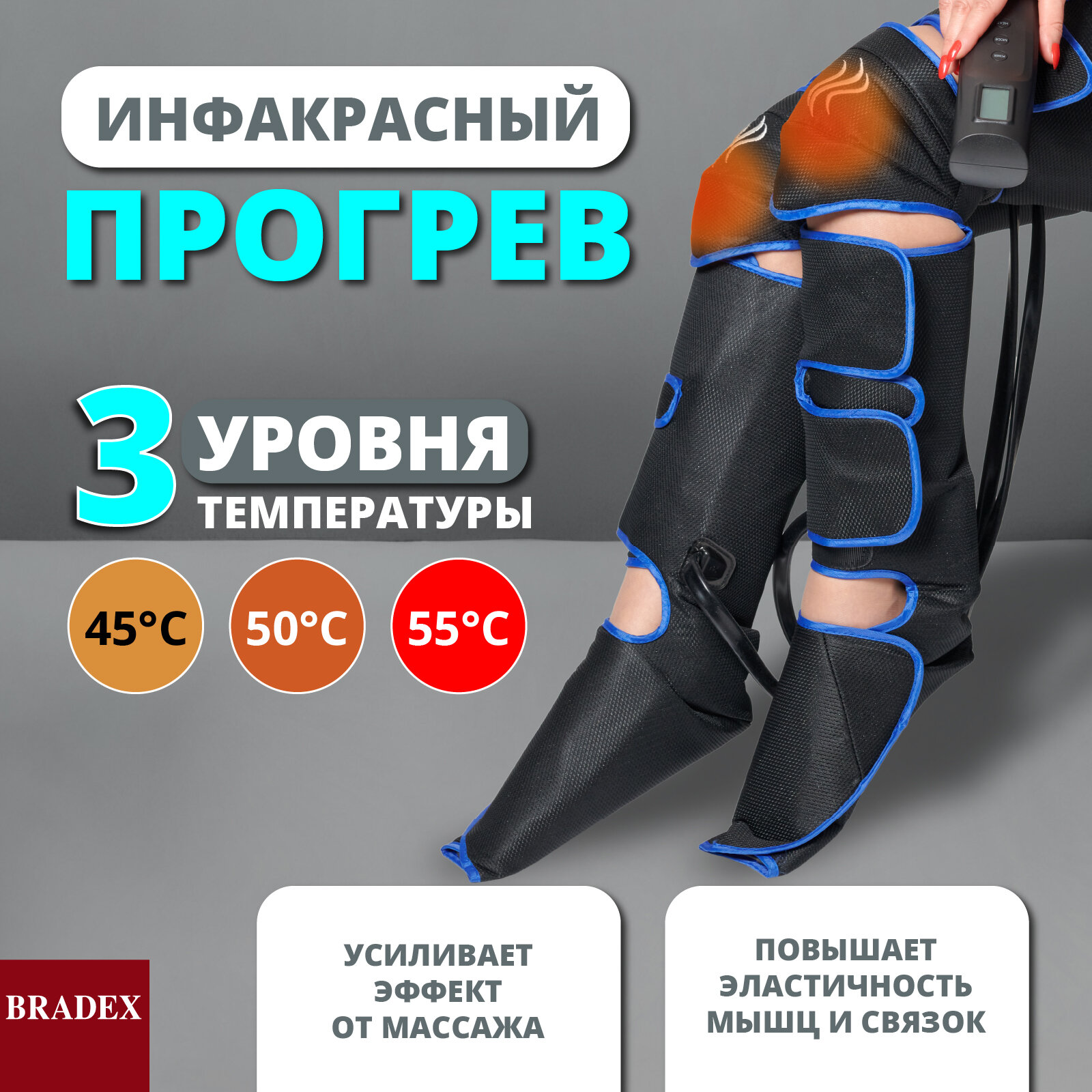 Компрессионный лимфодренажный массажер для ног с прогревом коленей и длинными манжетами Bradex