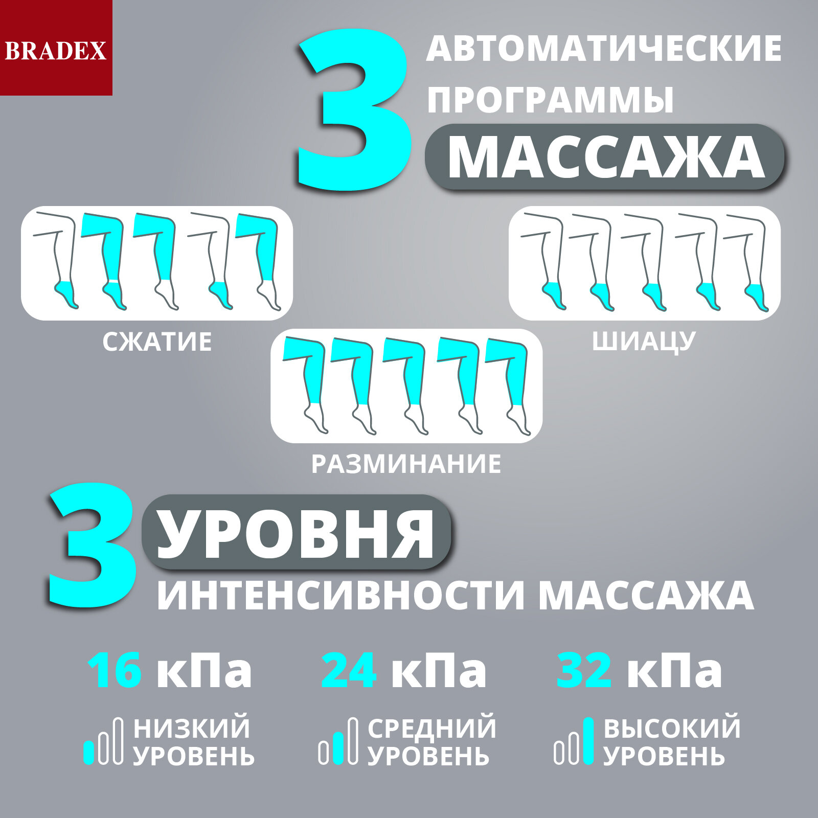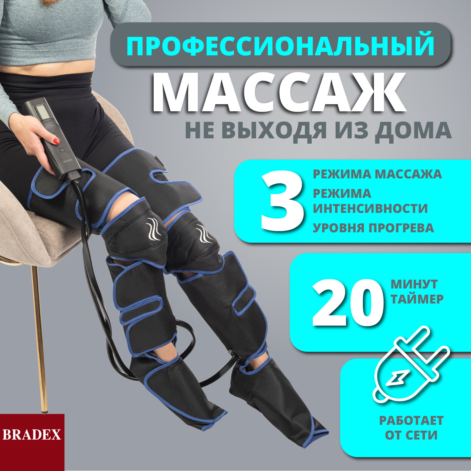 Компрессионный лимфодренажный массажер для ног, Bradex (товары для здоровья, серый, KZ 1166)