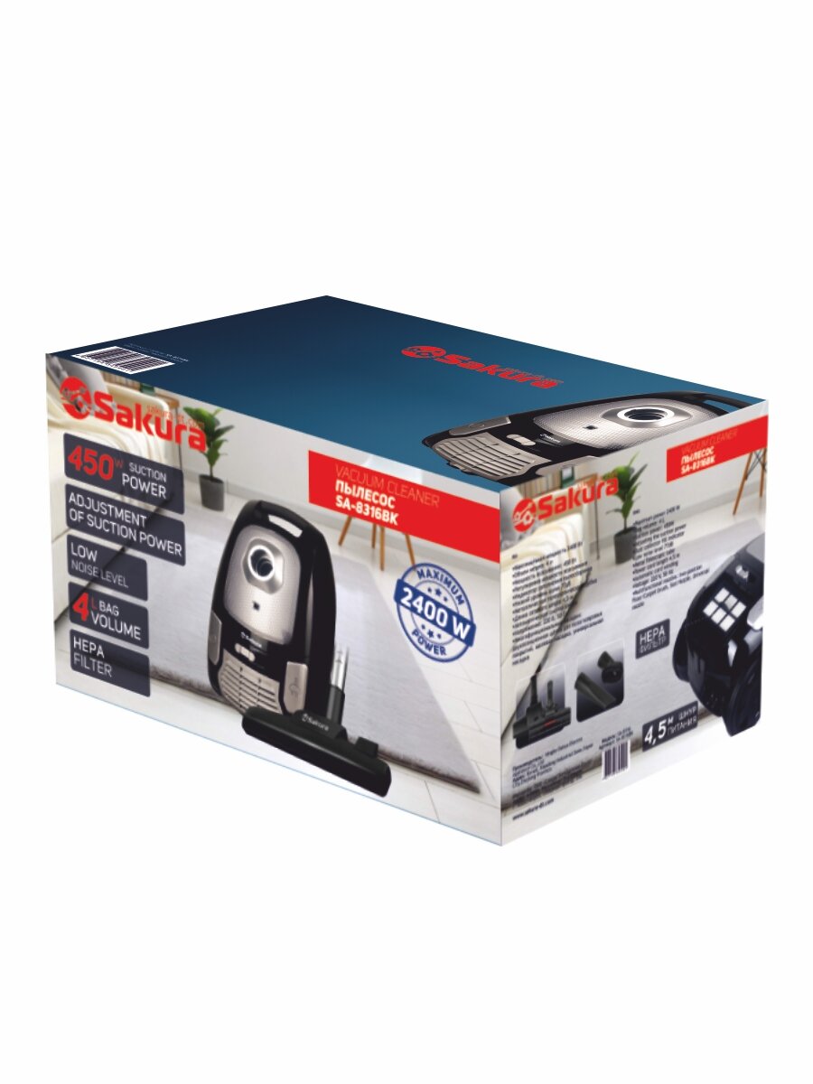 Купить Пылесос SA-8316BK, 2400/450 Вт, HEPA-фильтр, 4 л, чёрный