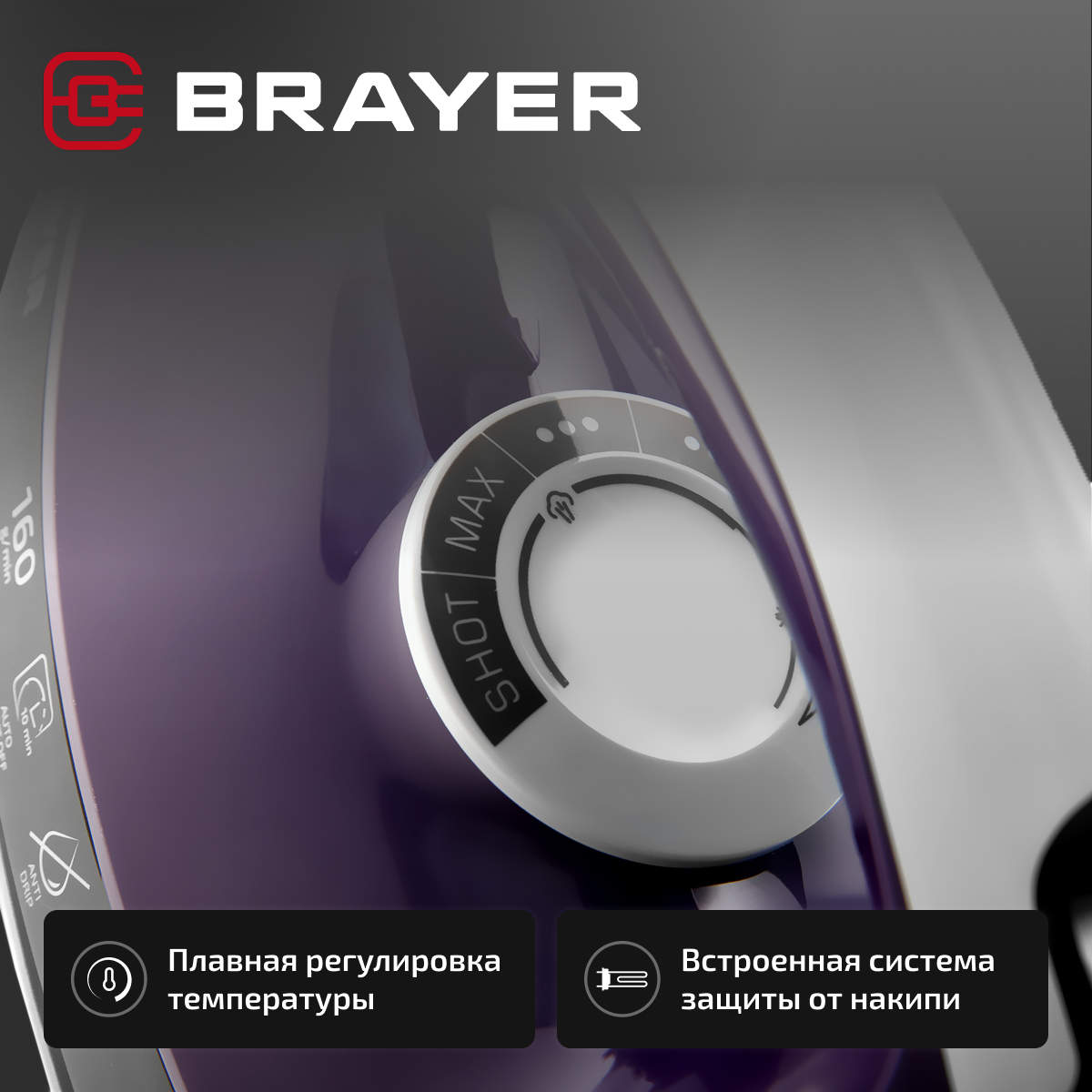 СохранитьПарогенератор, паровая станция BRAYER BR4152, 2800 Вт, пар 160 г/мин, керамическая подошва, самоочистка, антикапля,цвет фиолетовый интересное:
