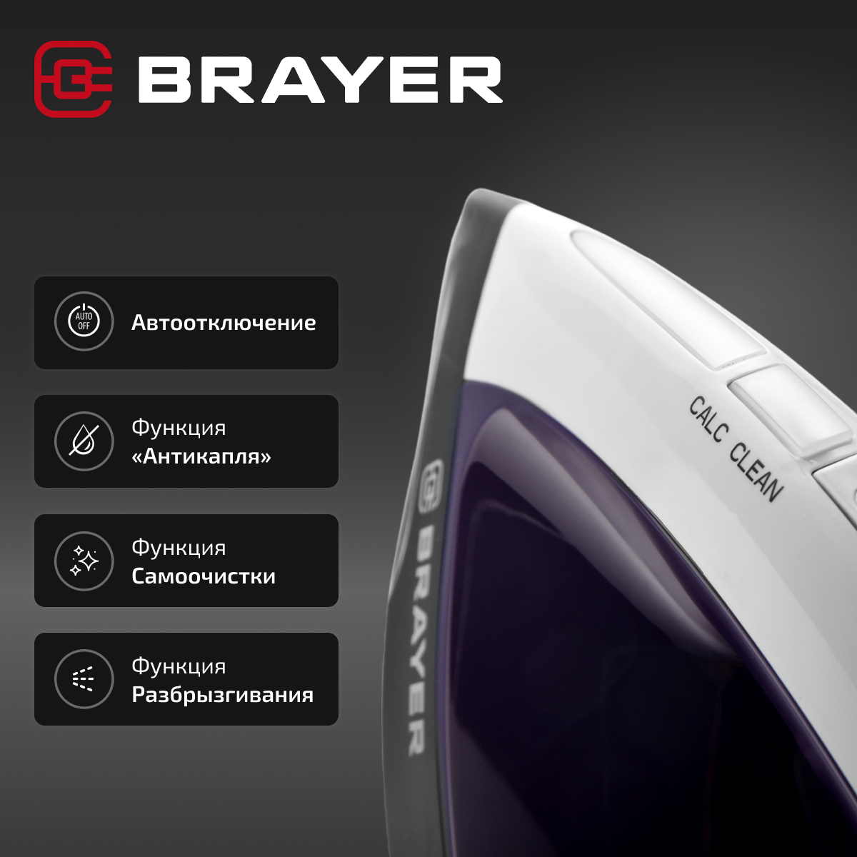 4152BR Паровая станция BRAYER, 2800 Вт, керамич, антикапля, давление 6.5 бар, 1,8 л, верт отпарив