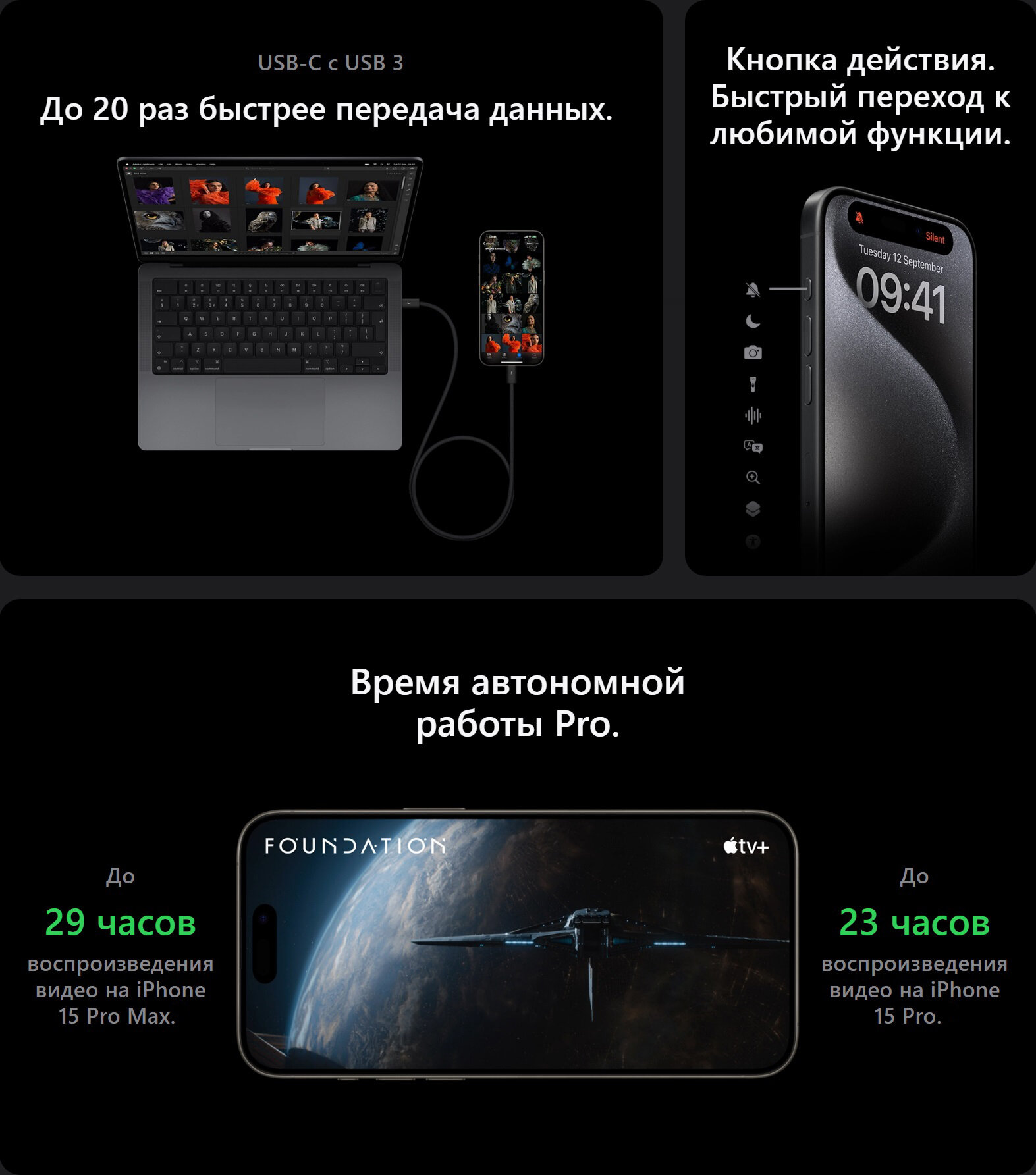 | Комплектация | смартфон Apple iPhone 15 Pro Max, кабель USB‑C, документация |
