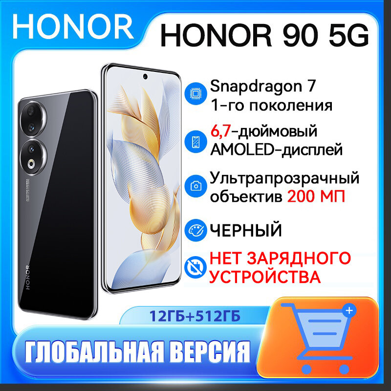 Смартфон Honor 90 12/512 ГБ (Нет зарядного устройства),Черный