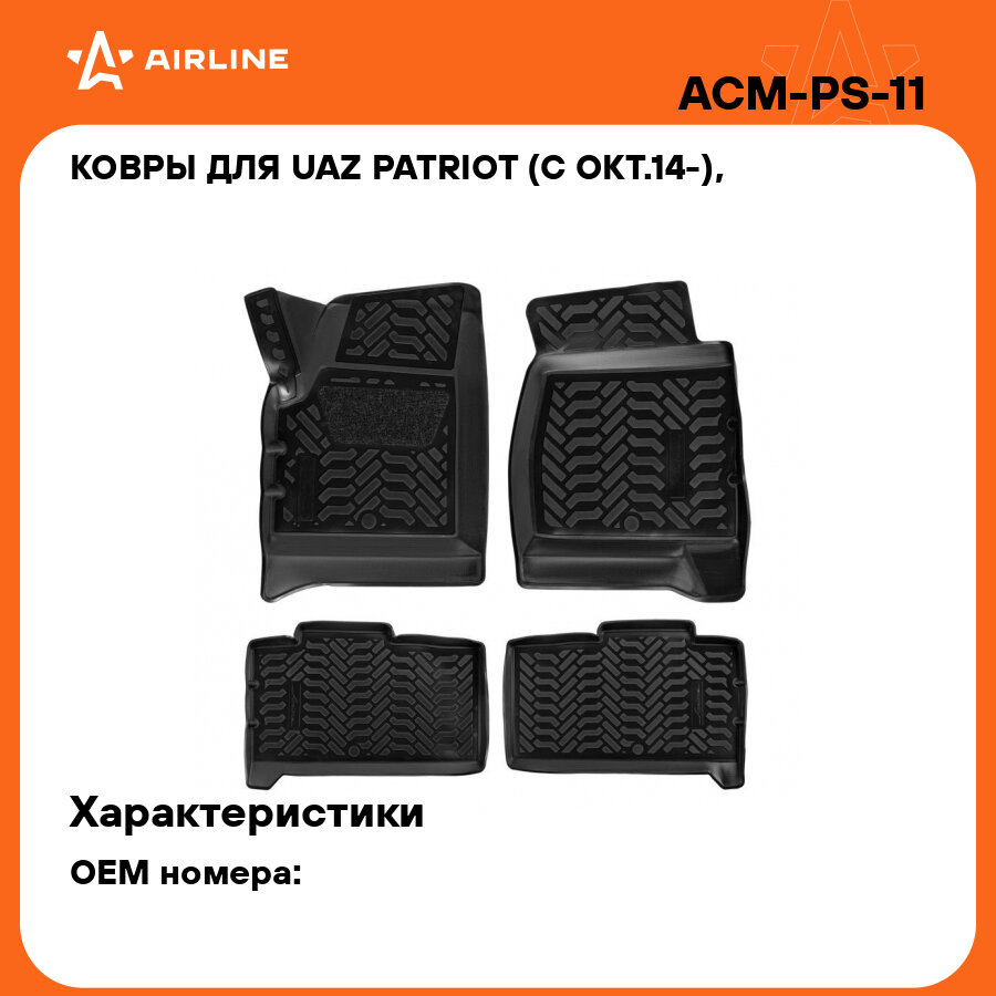 AIRLINE ACM-PS-11 Ковры для UAZ Patriot (с окт.14-) 4 шт. выс. борт 3D с подпятником ТЭП черн. (ACM-PS-11)