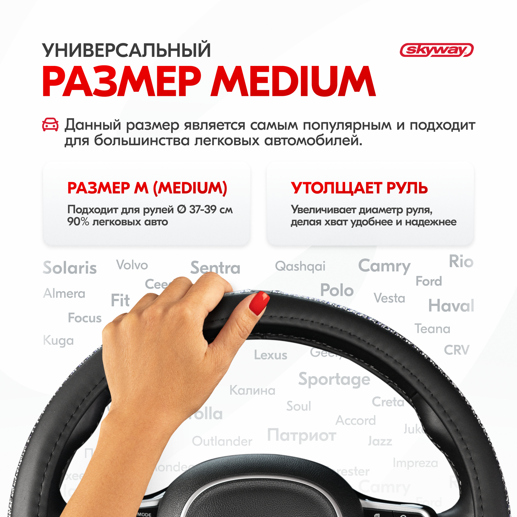 Оплетка SKYWAY Crystal-1 для руля диаметром 37/38/39см, экокожа, размер M, со стразами, S01102463