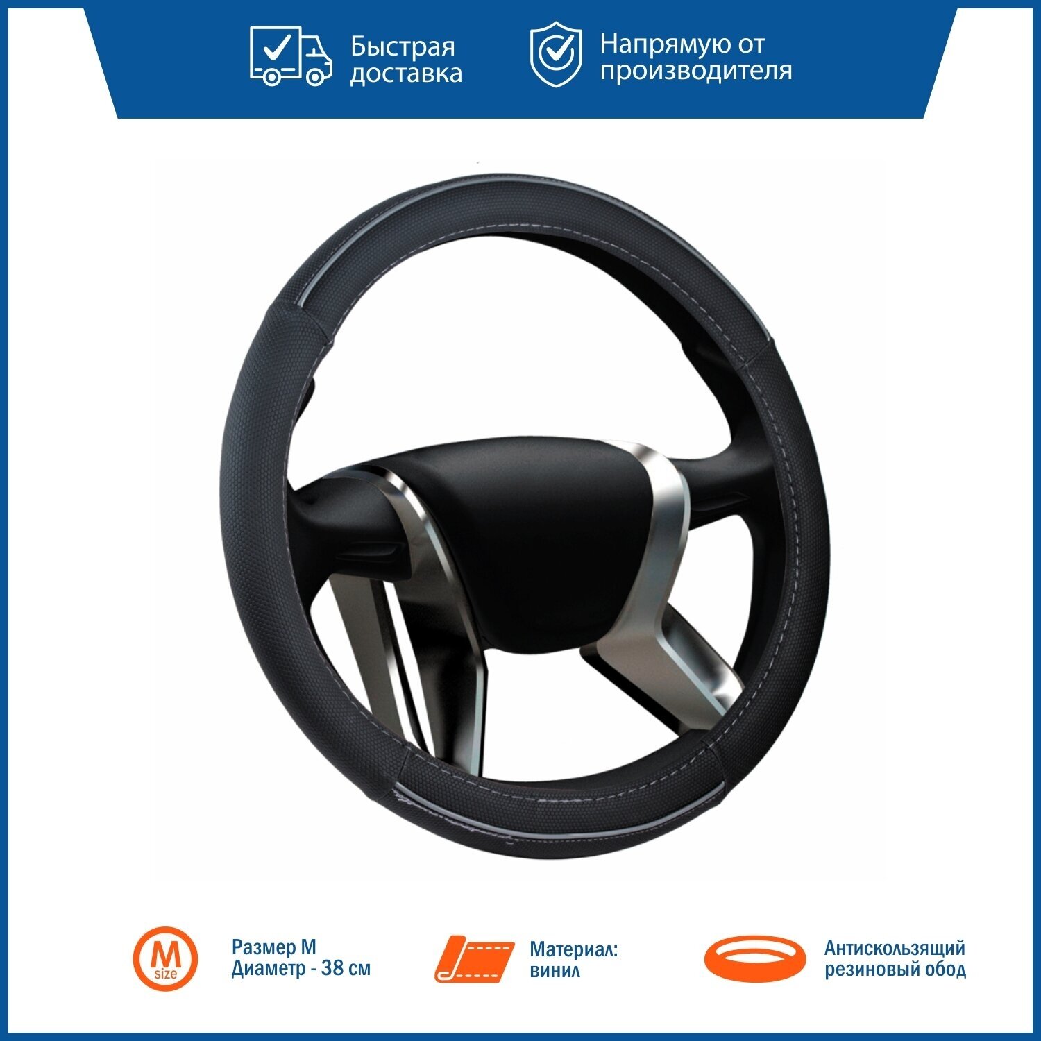 | Плюсы: | хорошее качество материала, не пачкается, на руле не прокручивается |