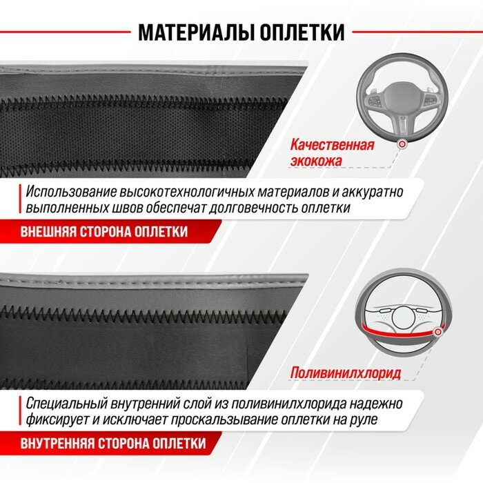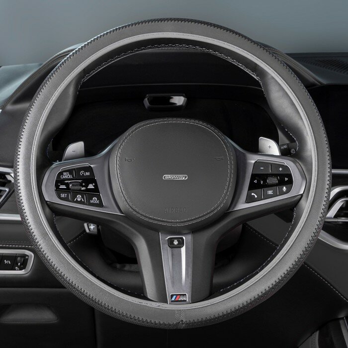 Оплетка на руль Top-12 SKYWAY M (37-39) серый экокожа, S01102501