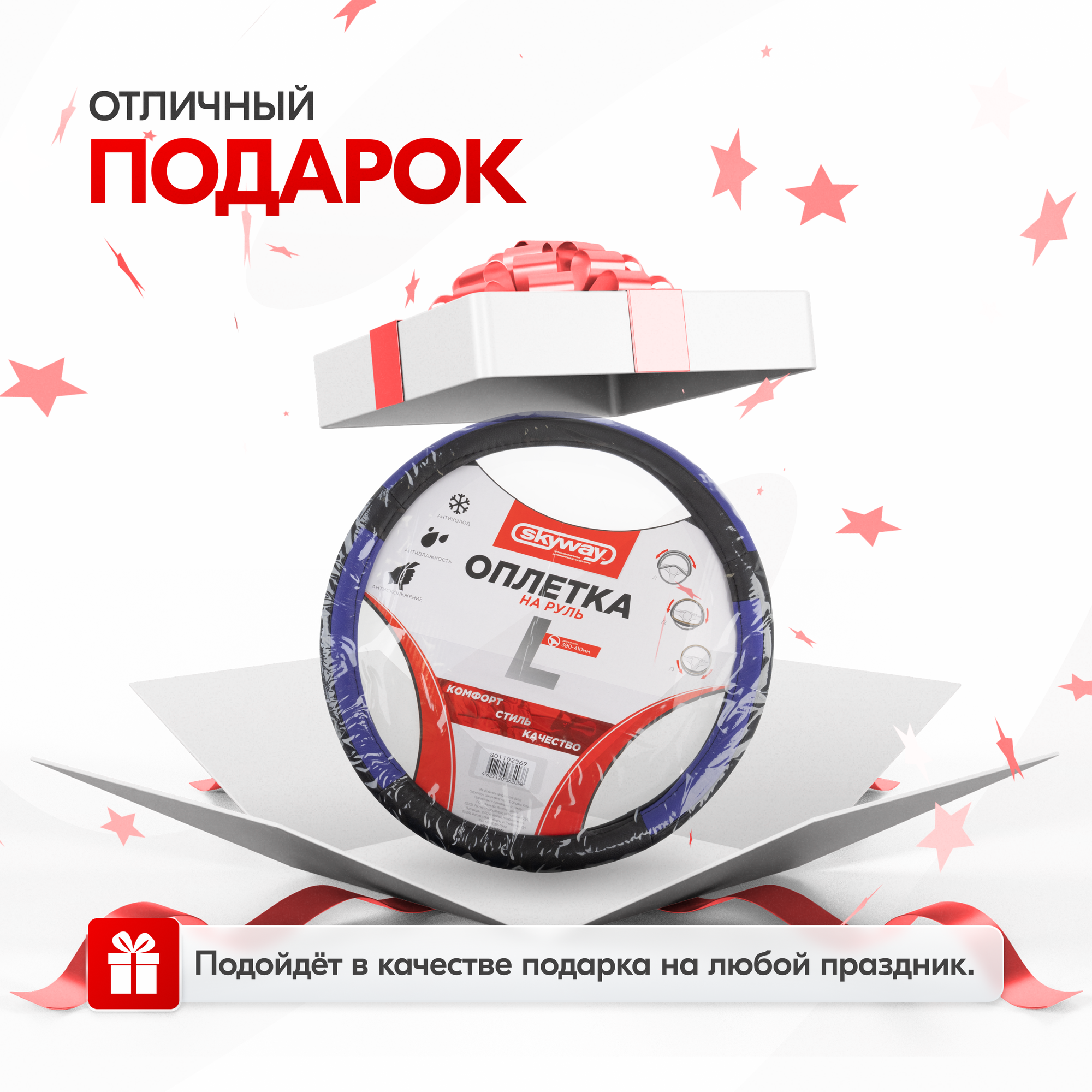Оплетка на руль Combo-3 SKYWAY L (39-41) черный; красный экокожа , S01102365