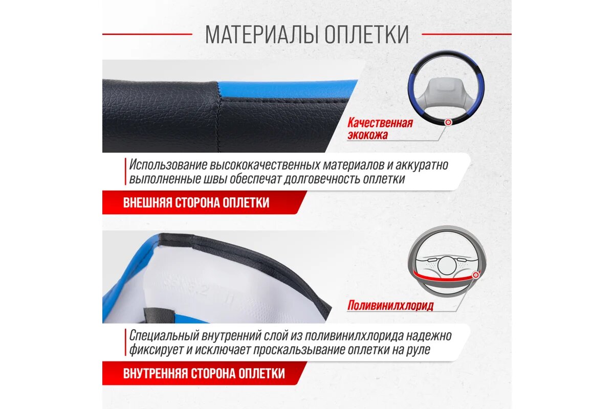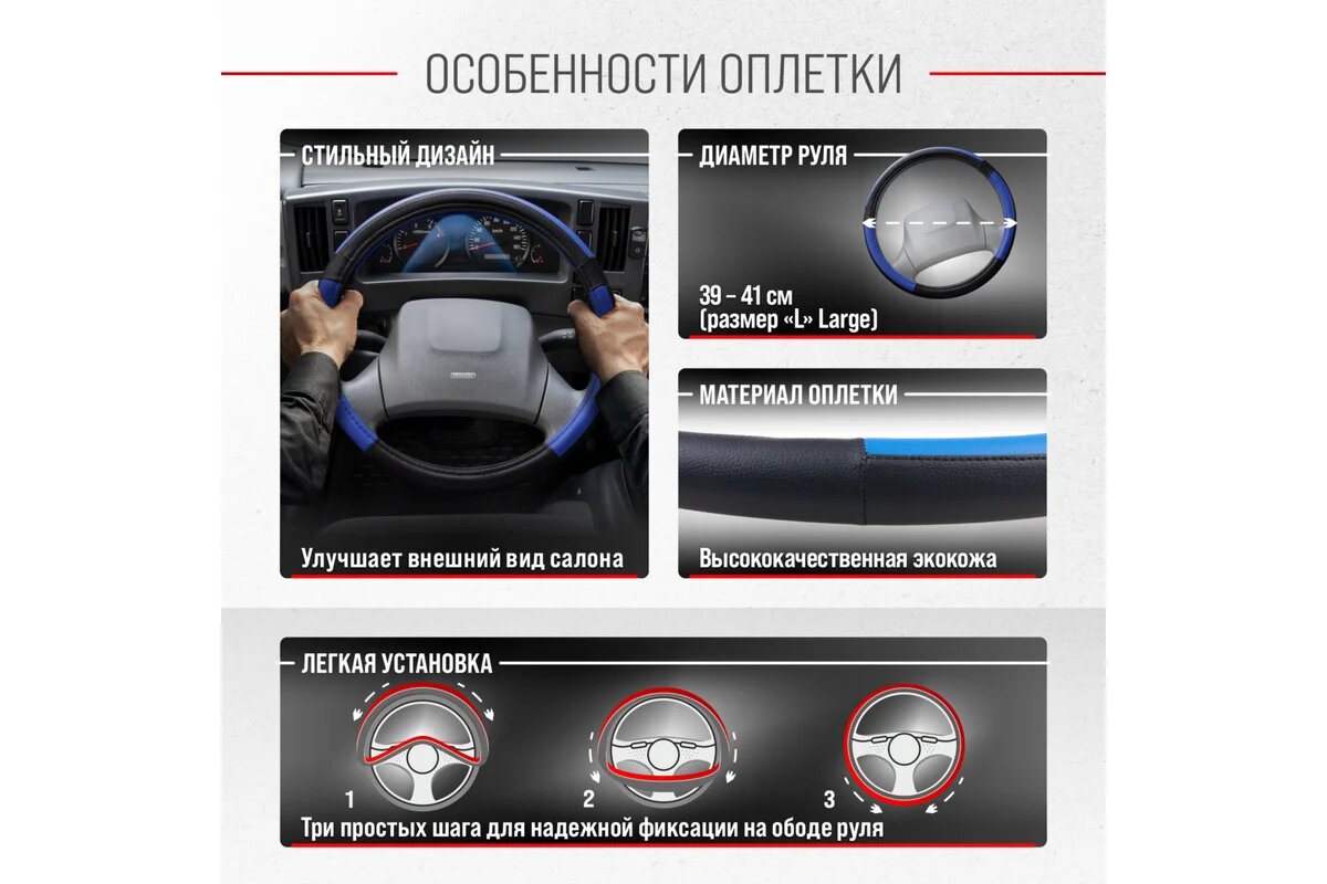 Оплетка на руль Combo-3 SKYWAY L (39-41) черный; синий экокожа, S01102369
