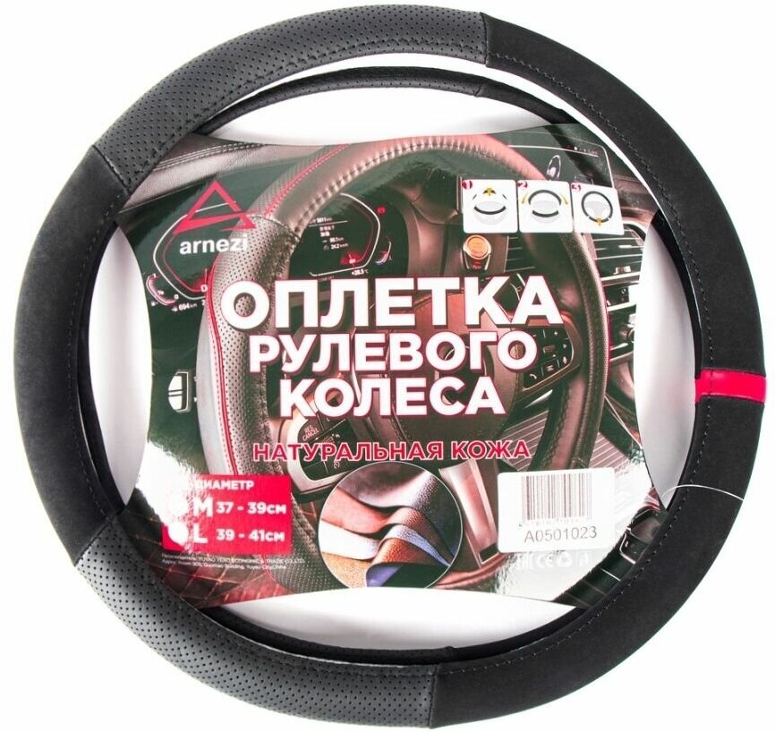 Оплетка на руль размер M 38см, натуральная кожа, Софт Тач черная с перфорацией ARNEZI A0501023 интересное: