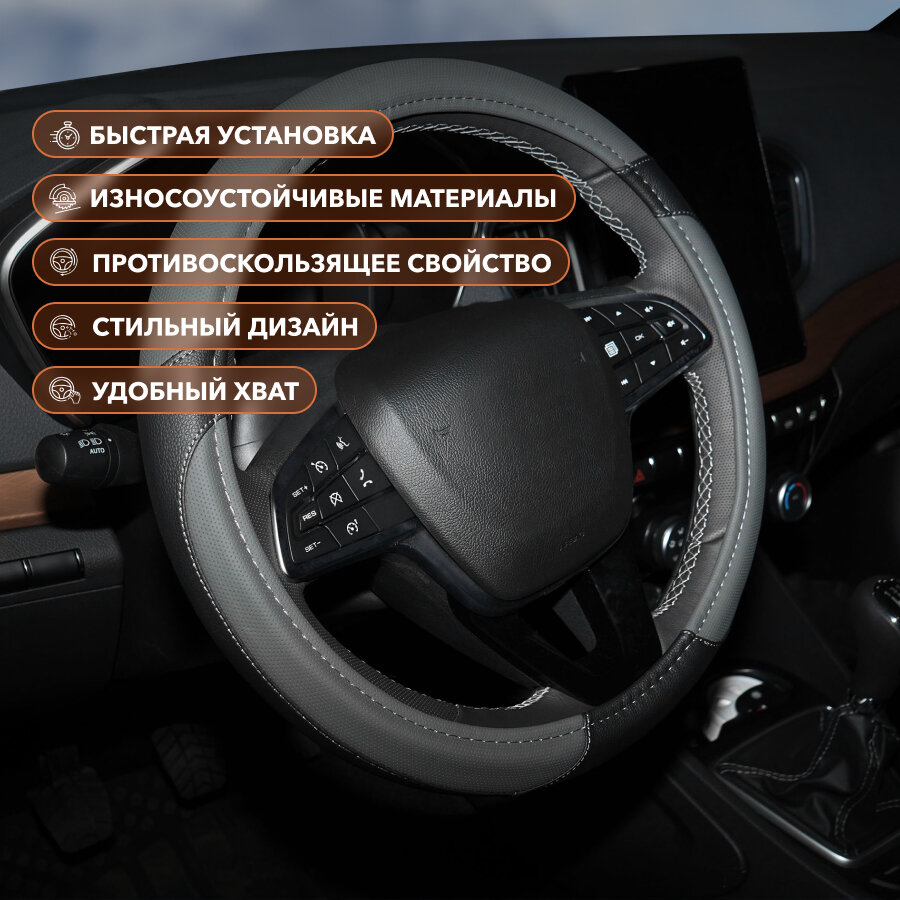 Оплетка на руль Top-12 SKYWAY M (37-39) серый экокожа, S01102501