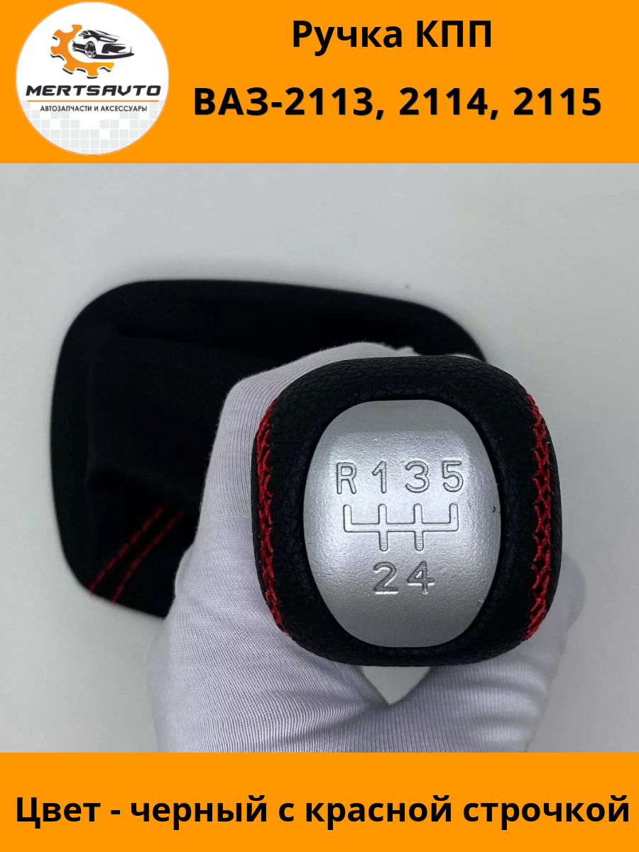 Ручка КПП с чехлом "люкс-серебро" на ВАЗ-2113, 2114, 2115 (Лада, Lada),(Самара,Samara) ручка коробки переключения передач, черный c красной строчкой