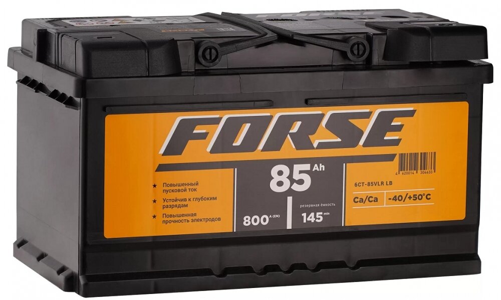 Аккумулятор автомобильный FORSE 85 А/ч 800 А обр. пол. низкий Евро авто (315x175x175) 6СТ-85VLR (0) LB интересное: