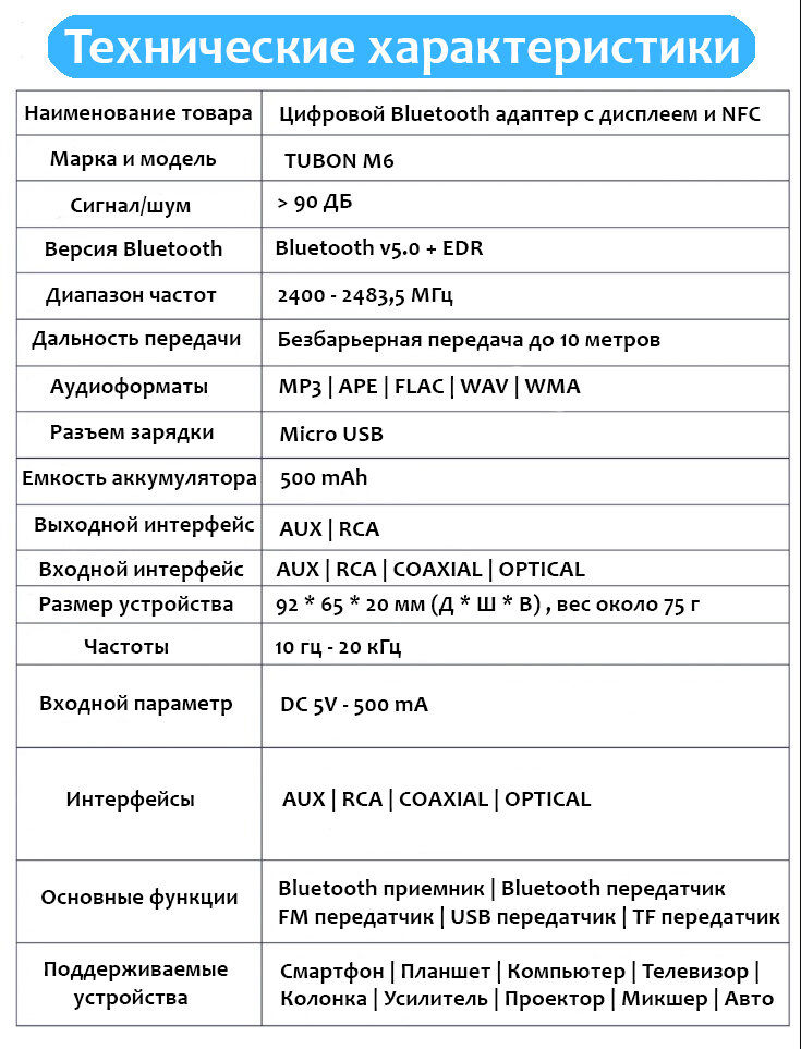 Ниже Вы можете прочитать отзывы на Адаптер FM Bluetooth Трансмиттер Ресивер (Приемник Передатчик аудио) Coaxial Optical TosLink AUX RCA MicroSD USB. M6, ознакомится с подробными характеристиками, посмотреть интересные обзоры и фотографии на Адаптер FM Bluetooth Трансмиттер Ресивер (Приемник Передатчик аудио) Coaxial Optical TosLink AUX RCA MicroSD USB. M6.