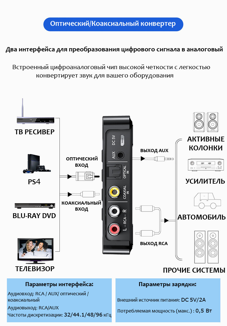 | Отзыв: | Взял в основном для старого проигрывателя винила Арктур 006, но его надо ещё немного доработать, поставить темброблок в канал звукого выхода, не хватает низов, пока подцепил через оптику к ТВ, звук хороший, стерео есть, громкость регулируется через пульт, как и входной источник сигнала, что весьма удобно. Звук по блютуз на колонки S30 со встроенным усилителем с Алиэкспресса - покупкой доволен. |