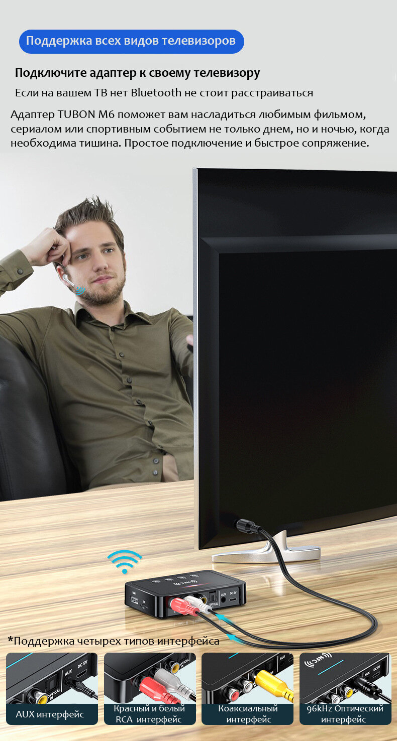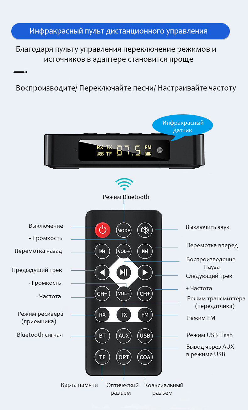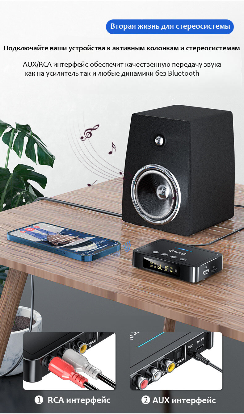 Адаптер FM Bluetooth Трансмиттер Ресивер (Приемник Передатчик аудио) Coaxial Optical TosLink AUX RCA MicroSD USB. M6 интересное: