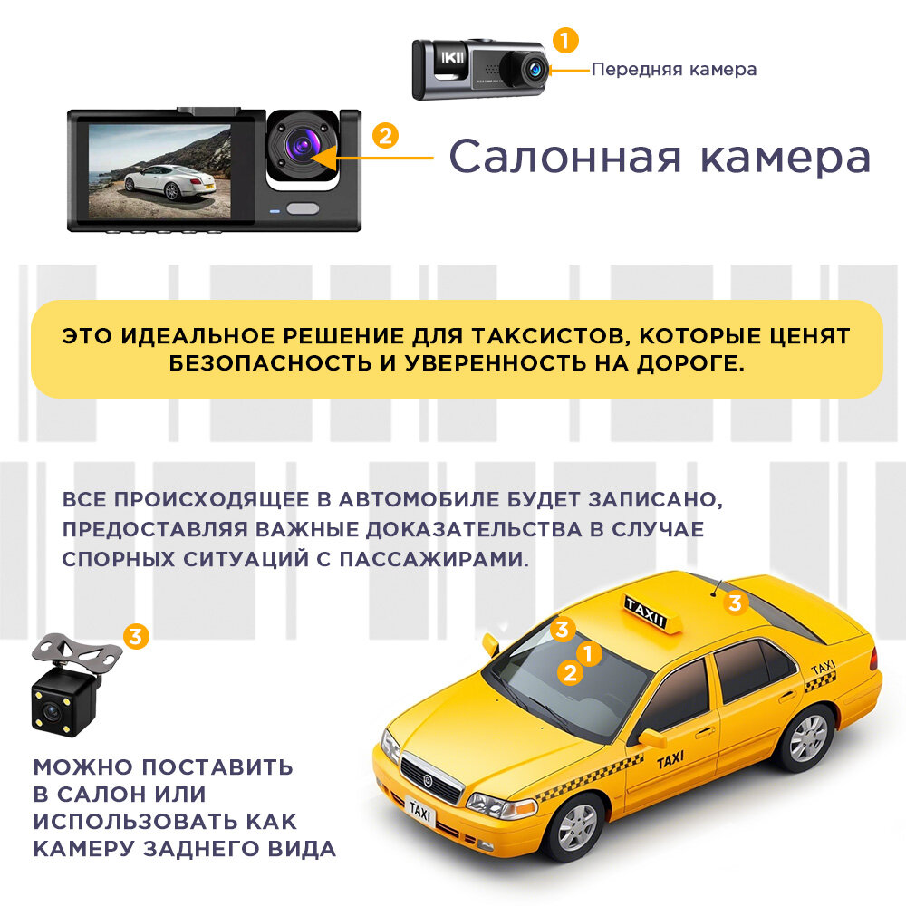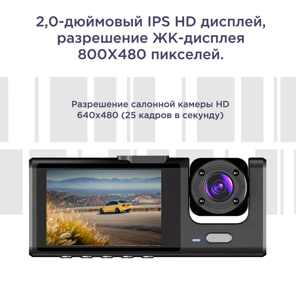 Автомобильный видеорегистратор 3 камеры датчик движения G-сенсор черный S&H Electronics TF-карты на 32 Гб автовизитка