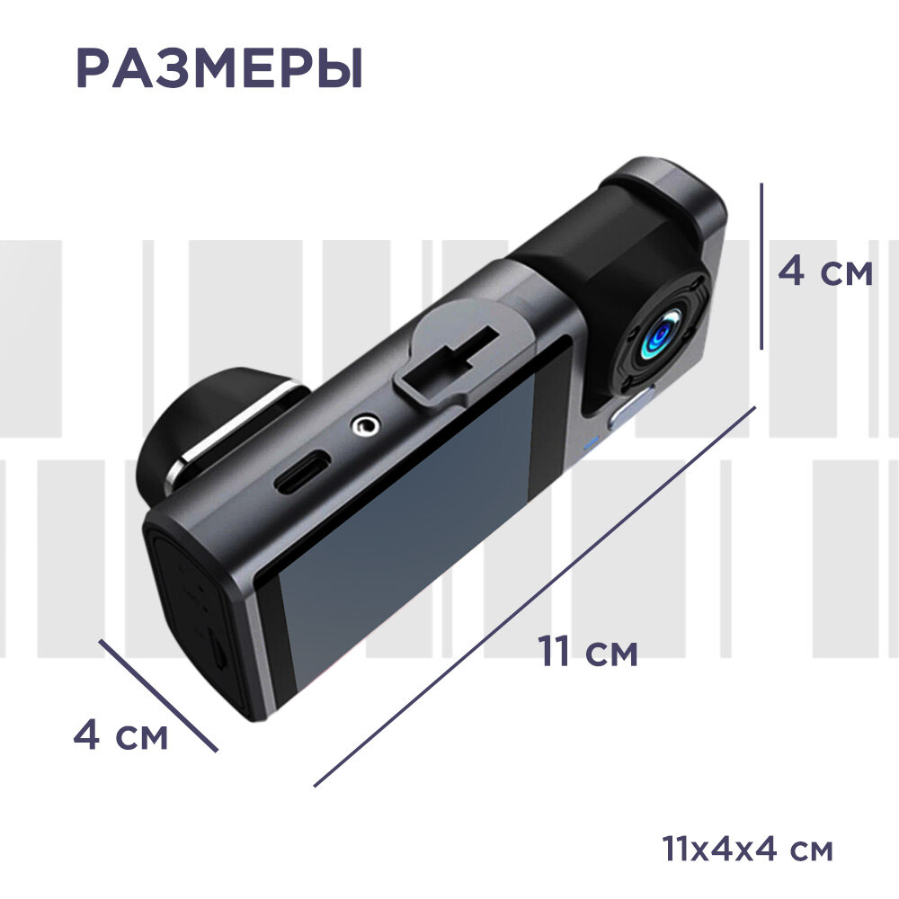 Видеорегистратор для автомобиля S11 3 камеры датчик движения G-сенсор черный S&H Electronics TF-карты на 32 Гб автовизитка