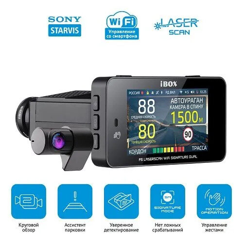 Видеорегистратор с сигнатурным радар-детектором iBOX F5 LaserScan WiFi Signature Dual+Камера заднего вида iBOX RearCam FHD1 1080p