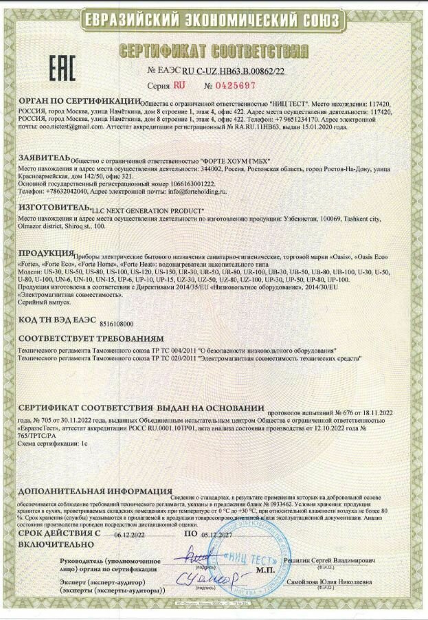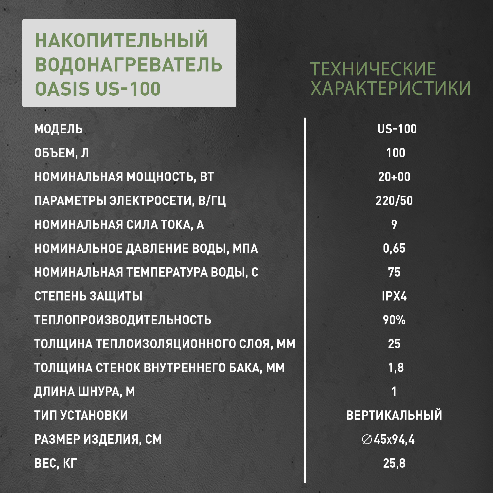 Водонагреватель OASIS US- 100 /бел., кругл., 2000Вт, бак-эмаль/ интересное: