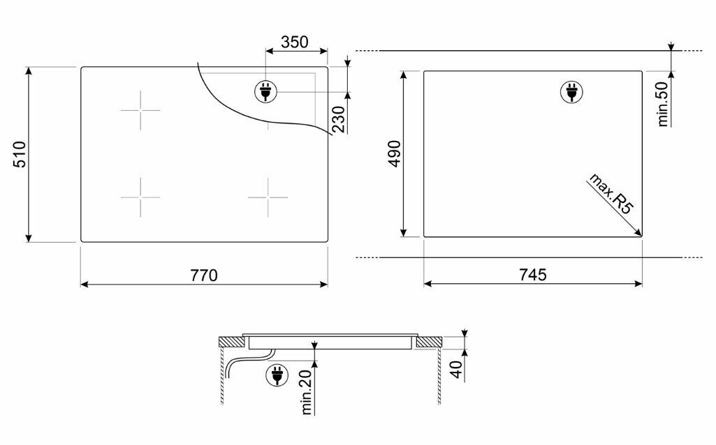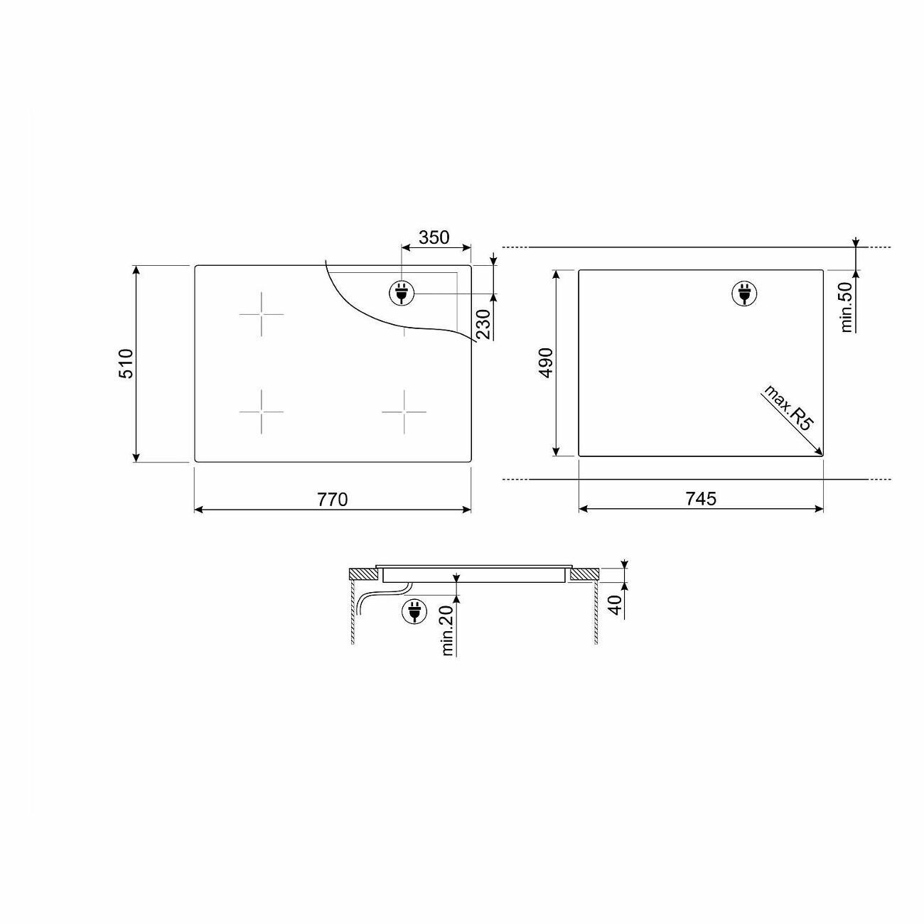Встраиваемая варочная панель Smeg 80 см, ультранизкий профиль, Compact Slider, 4 зоны, черный цвет SE484EMTD интересное: