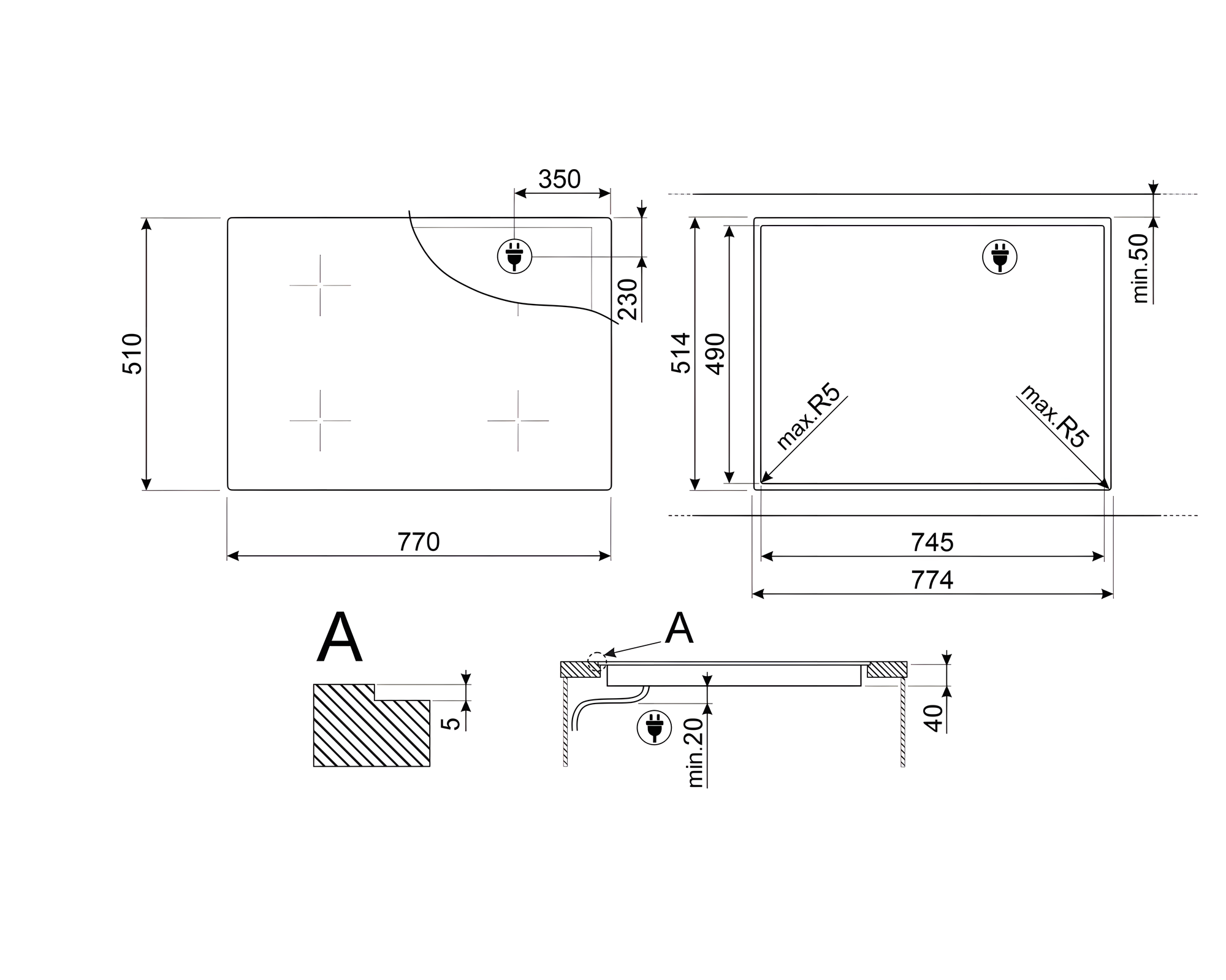 | Ширина для встраивания | 74 см |
