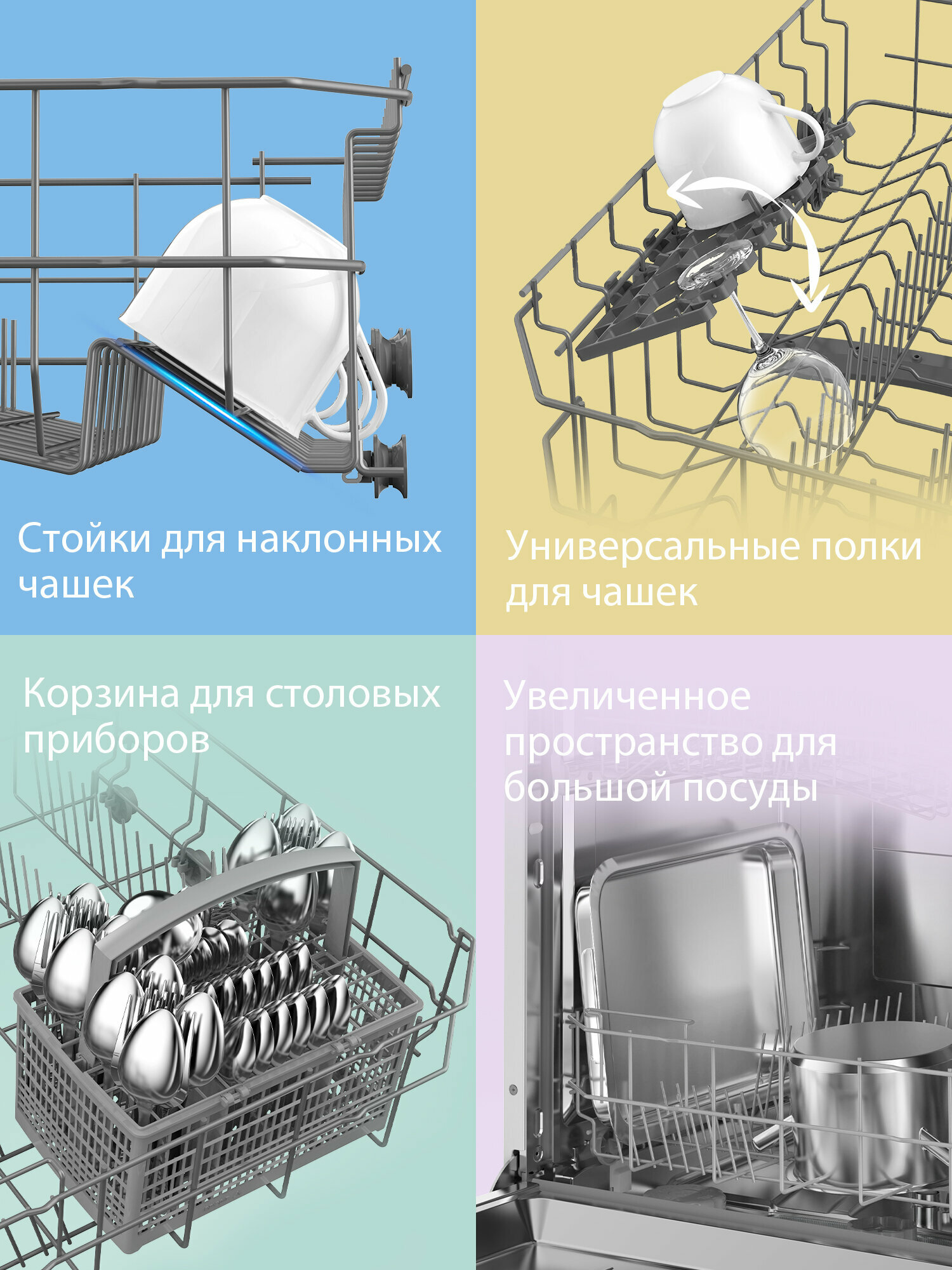 Плохо моет, только на полном цикле более не менее, не рационально использовано внутреннее пространство. Много места, а посуды помещается мало. Очень недовольна
