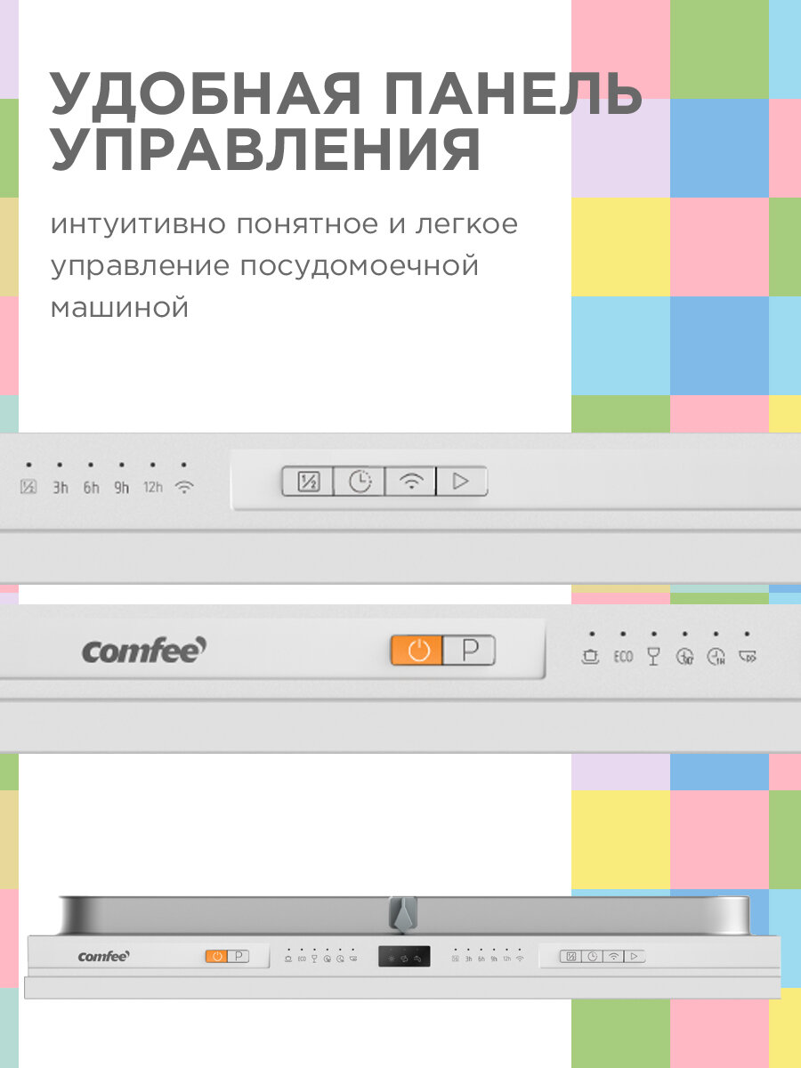 Купить Встраиваемая посудомоечная машина Comfee CDWI602i, Wi-Fi управление, ширина 60 см, 6 программ, самоочистка, отложенный старт, экспресс-мойка и сушка