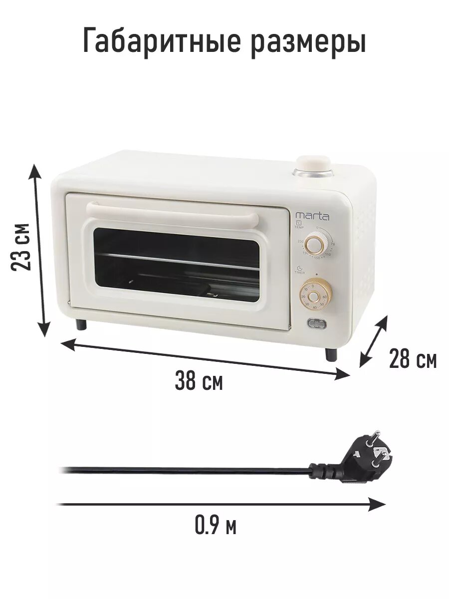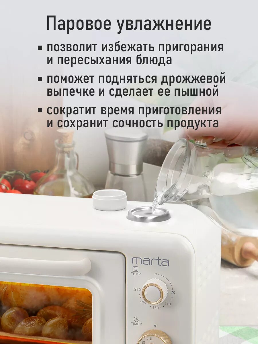 MARTA MT-EO4298A белый жемчуг духовой шкаф (Мини-печь) 14л. (Паровое увлажнение)