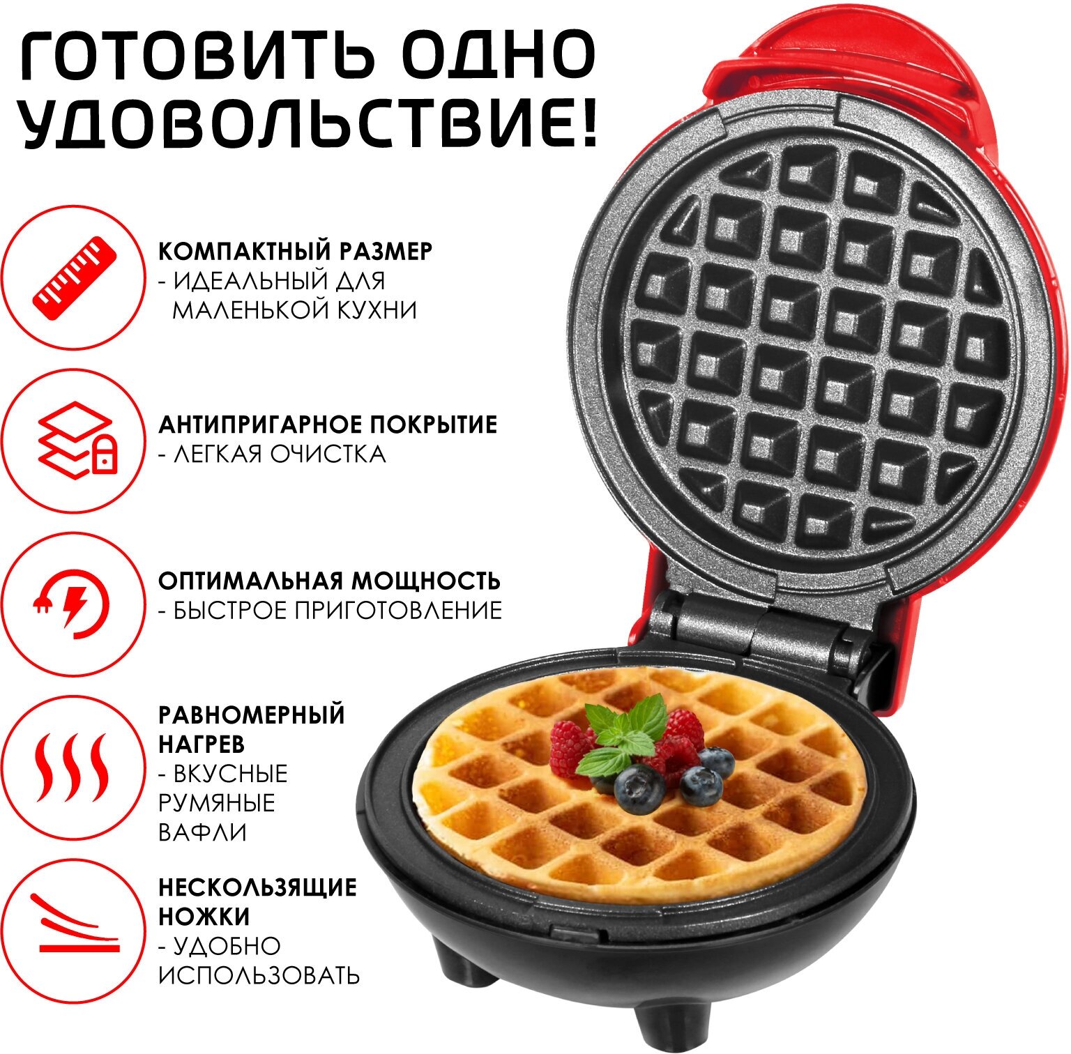 Мини-вафельница электрическая HOTTER HX-2201R красная с рисунком "Бабочки", 550Вт, венские и бельгийские вафли интересное: