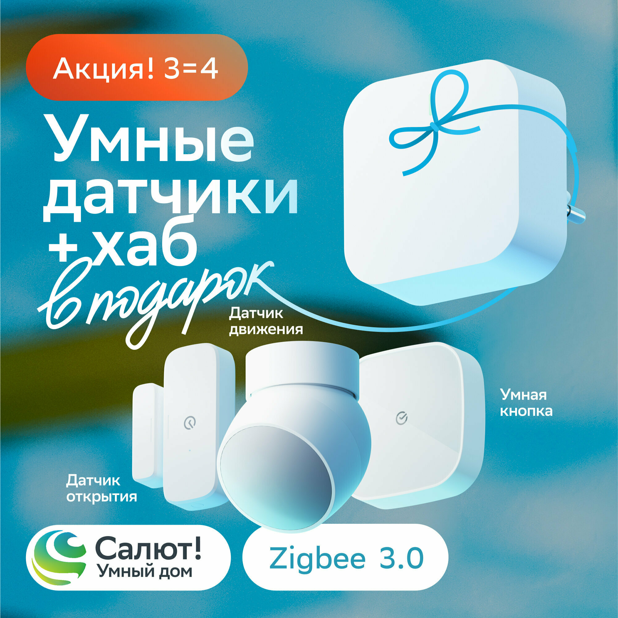 Комплект умных датчиков + умный хаб Sber, SBDV-00068R, Zigbee 3.0, Совместим с Салют и Яндекс Алисой, Белый интересное: