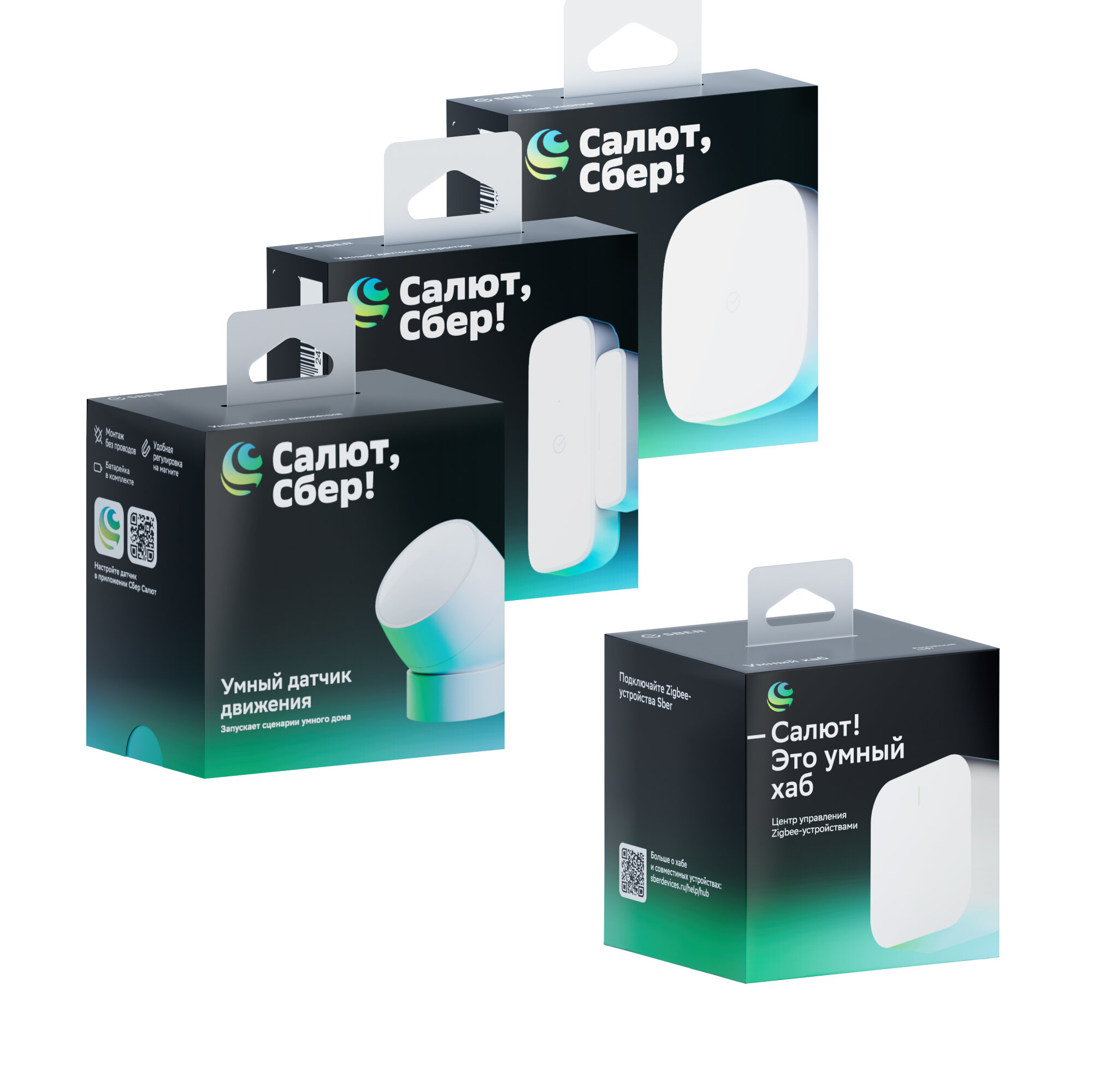 | Подробная комплектация | Умный хаб Sber, Умный датчик движения Sber, Умный датчик открытия Sber, Умная кнопка Sber, батарейки, руководство пользователя, коробка |