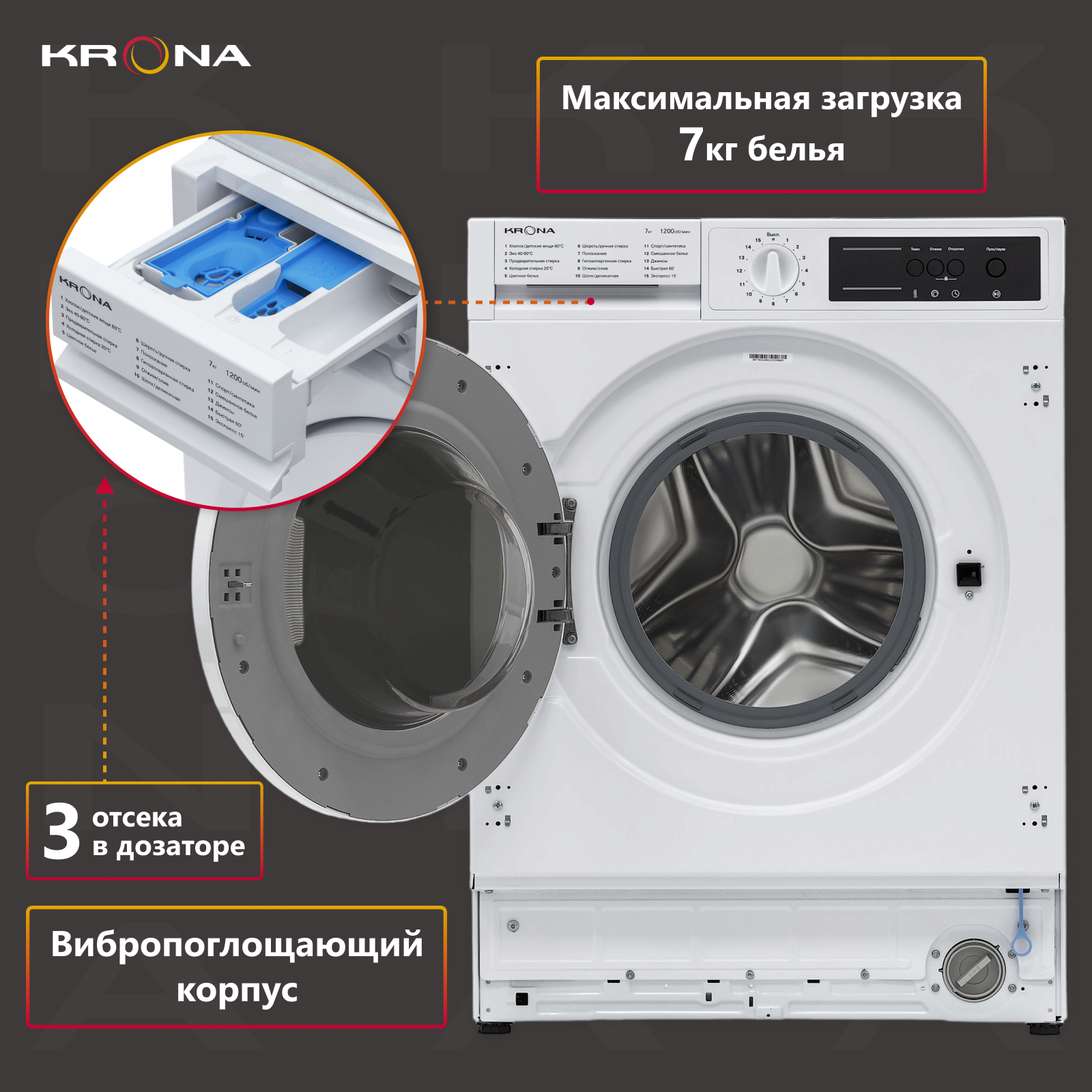 Встраиваемая стиральная машина Krona KAYA 1200 7K WHITE