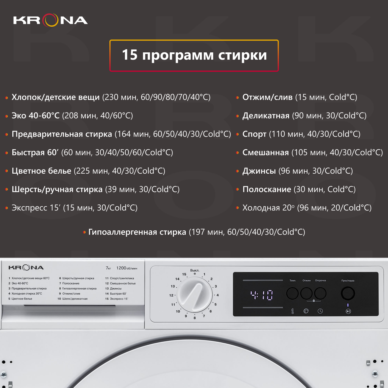 Стиральная машина Krona Kaya 1200 7k white, белый интересное: