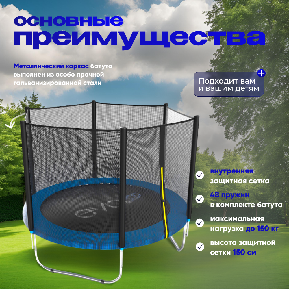 Батут EVO JUMP Standard 8ft, с внешней сеткой, диаметр 244 см, blue интересное: