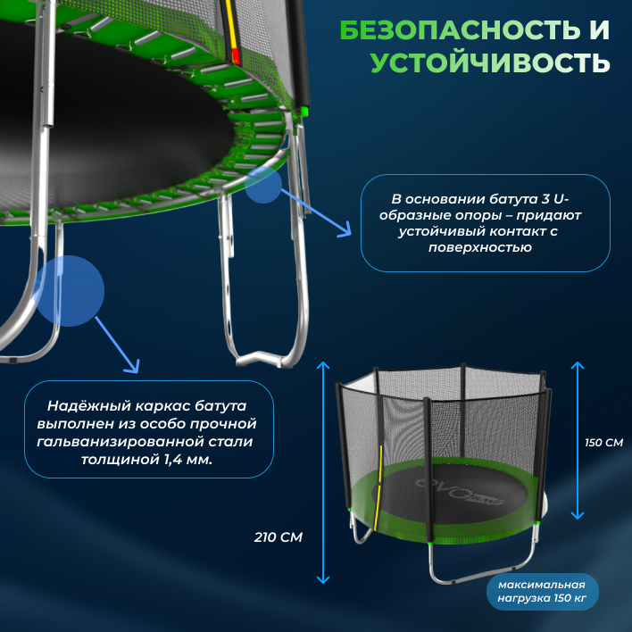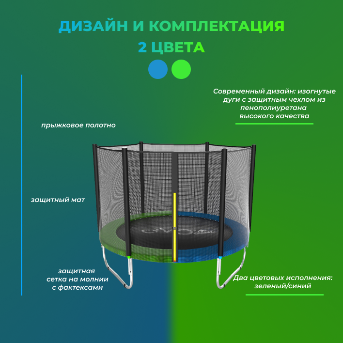 | Состав набора | каркас, прыжковое полотно, защитная сетка, инструкция. |