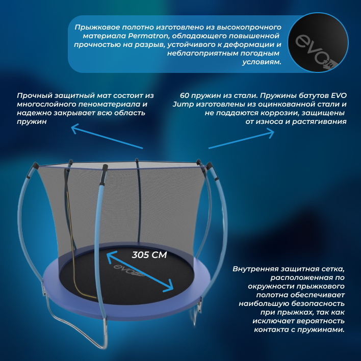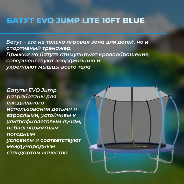 Батут EVO JUMP Lite 10ft, с внутренней сеткой, диаметр 305 см, blue интересное: